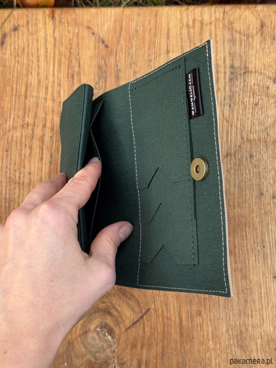 Portfel posiada wszystkie potrzebne kieszonki, jest ich siedem (w tym kieszonki na monety i banknoty). Jego wymiary to: 15,5 x 10cm