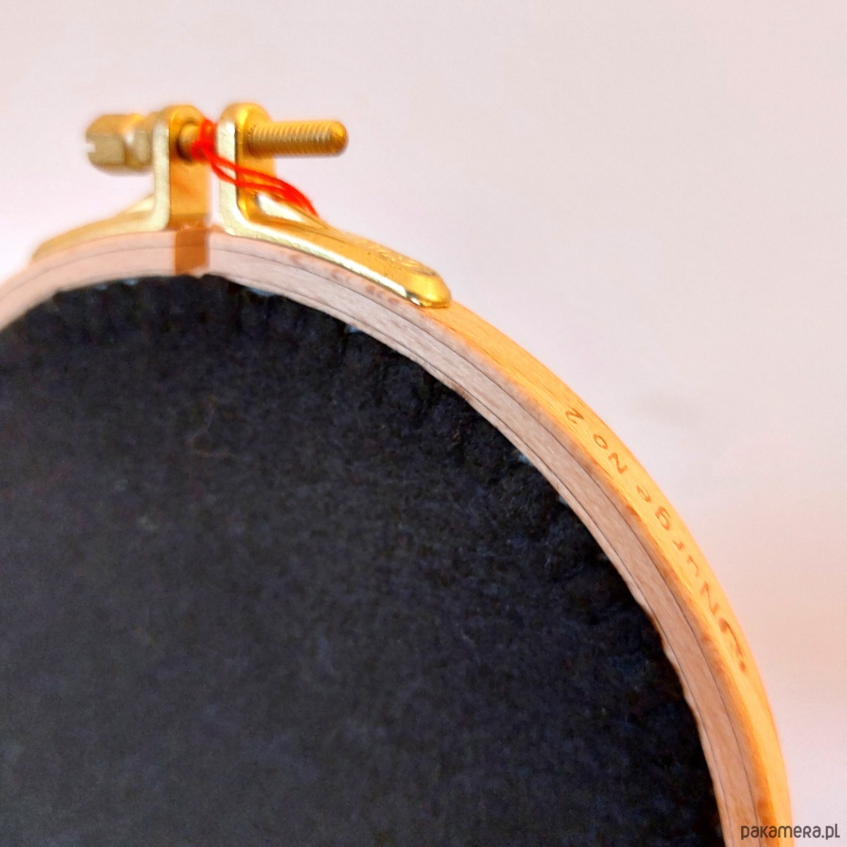 Tamborek Nurge o średnicy około 14 cm, podszyty z tyłu czarnym filcem