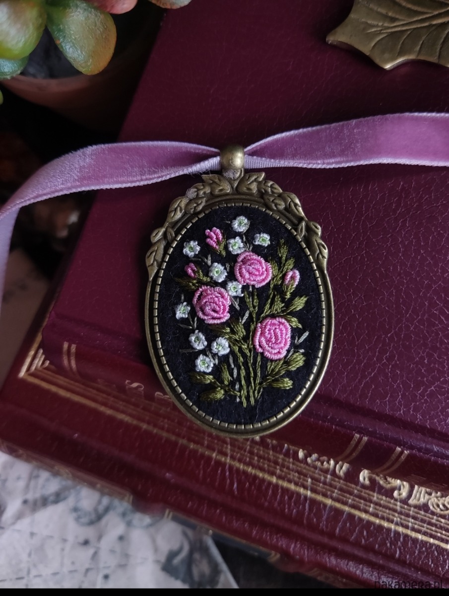 Haftowany wisiorek z różami