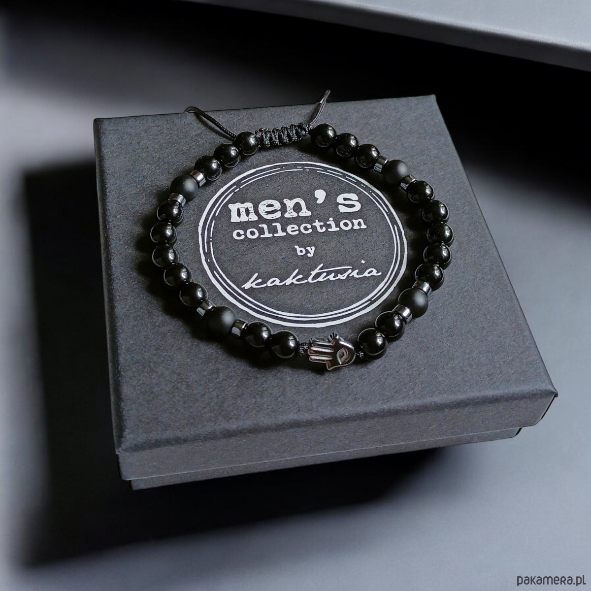 HAMSA - ochrona - onyks,hematyt - bransoletka regulowana ONE SIZE