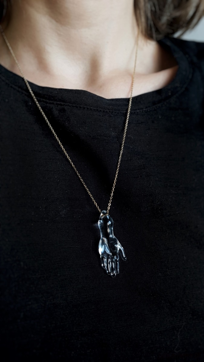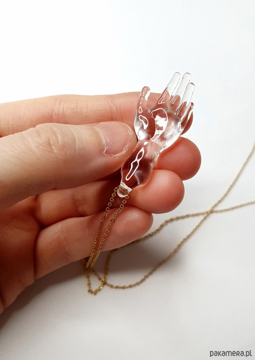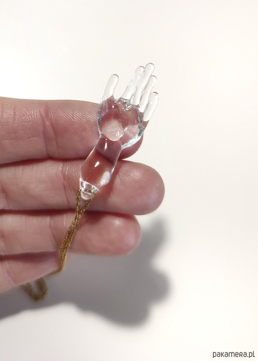 Każda dłoń jest tworzona ręcznie w szkle borokrzemowym. Jest to bardzo twarde i wytrzymałe szkło, które dobrze znosi wyzwania codzienności. Ze względu na ręczne wykonanie poszczególne dłonie mogą się między sobą delikatnie różnić.