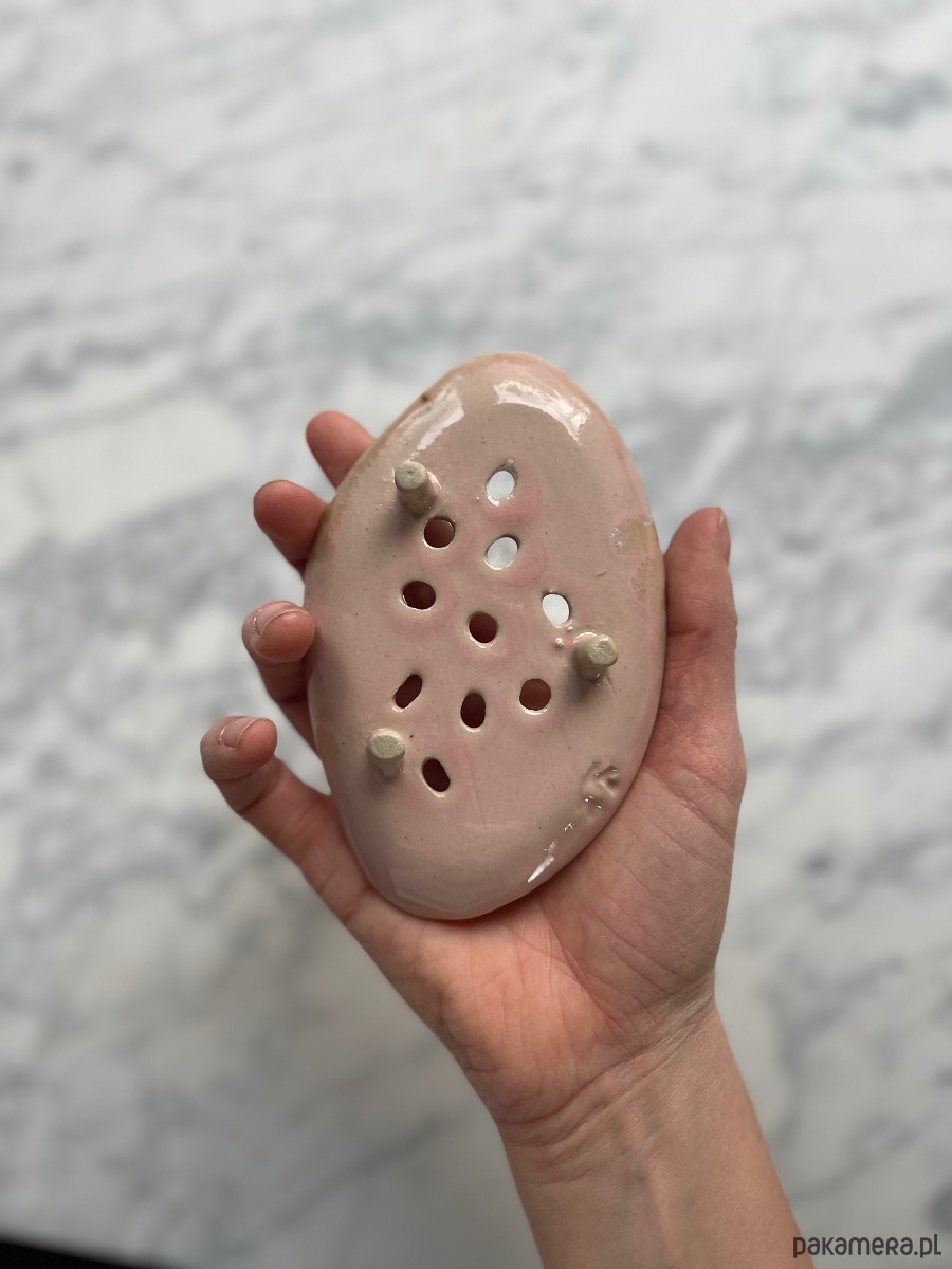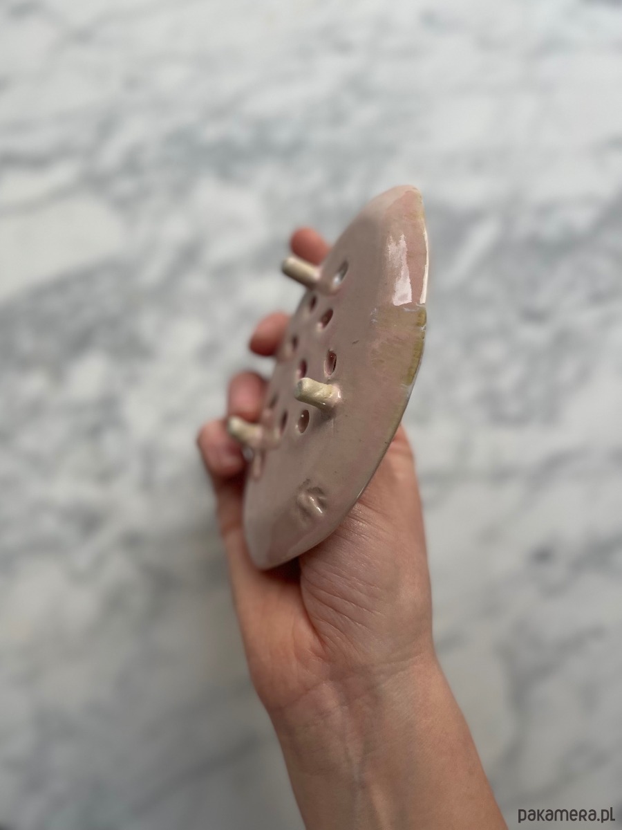 Mydelniczka ma mini nóżki, jest ulepiona i poszkliwiona ręcznie przez Moni, założycielkę marki Maison Fragile :) Każda jest tworzona oddzielnie, bez użycia form, w związku z czym każdy przedmiot jest unikatowy, noszący ślady rzemieślniczej pracy. Jest to idealny pomysł na prezent dla bliskiej osoby.