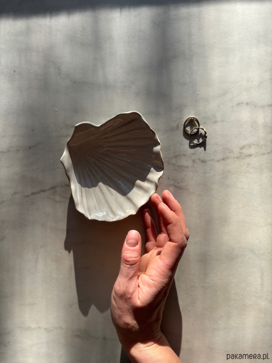 Ceramiczna ręcznie stworzona minimalistyczna muszelka na biżuterię, przekąski, palo santo lub inne ukochane drobiazgi.