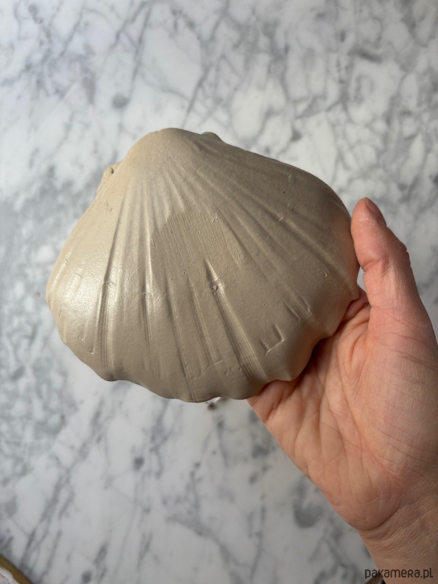 Muszelka jest ulepiona i proszkliwiona przez Moni, założycielkę marki Maison Fragile. Każda jest tworzona oddzielnie, bez użycia form, w związku z czym każdy przedmiot jest unikatowy i jedyny w swoim rodzaju.