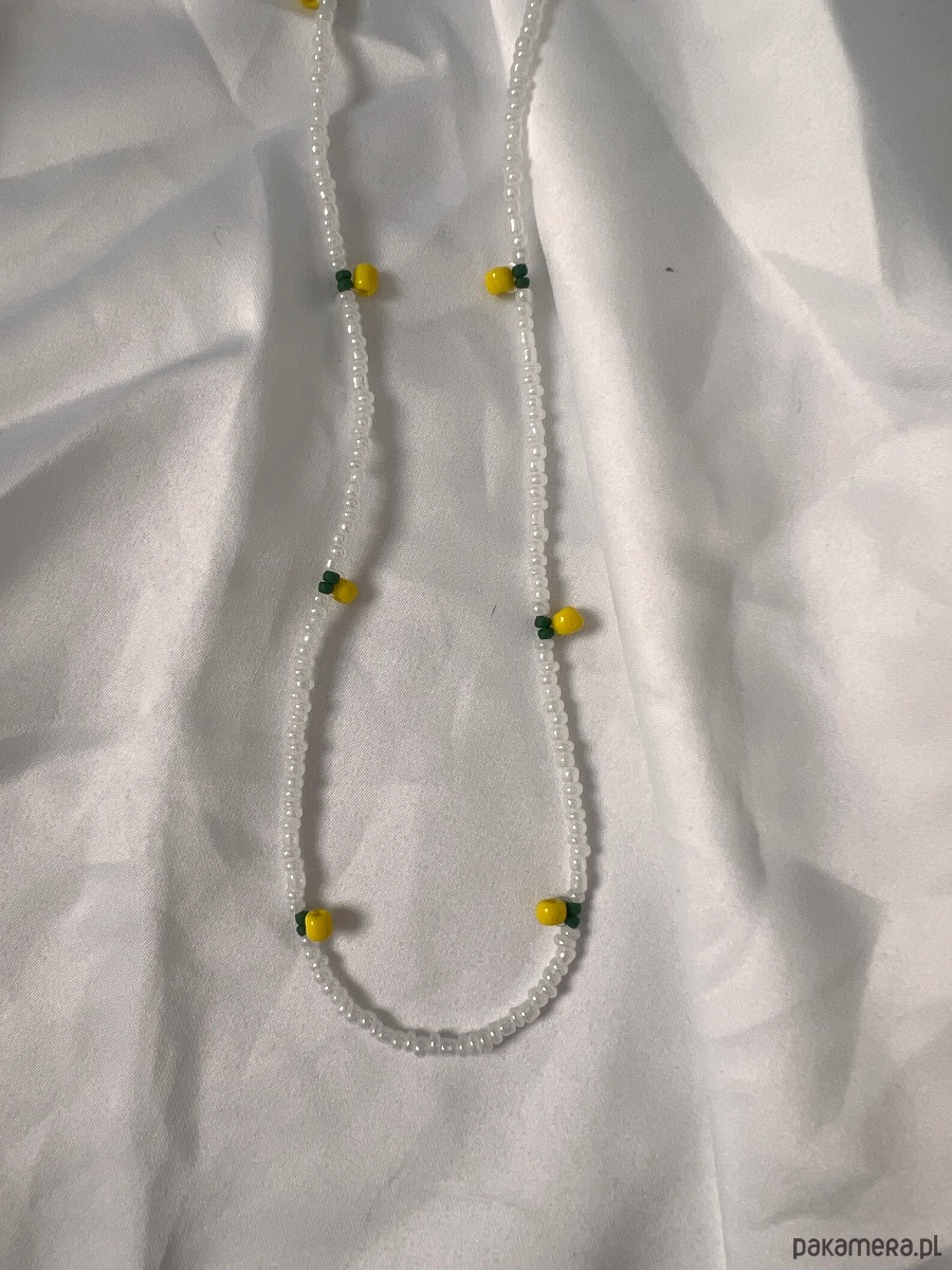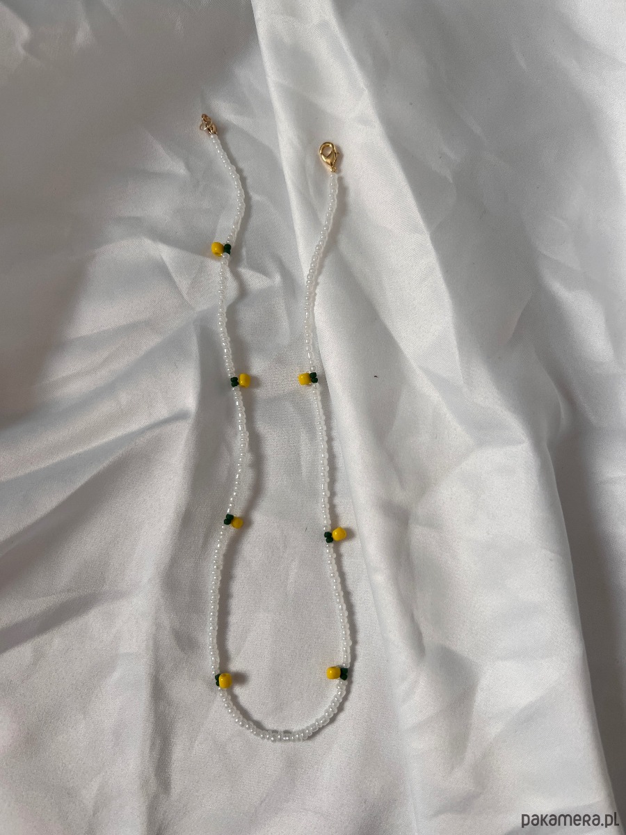 Biżuteria z koralików. Ręcznie robiony naszyjnik z motywem cytrynek. Możliwość wyboru rozmiaru. Zapięcie wykonane ze stali chirurgicznej. Każdy naszyjnik jest unikatowy.