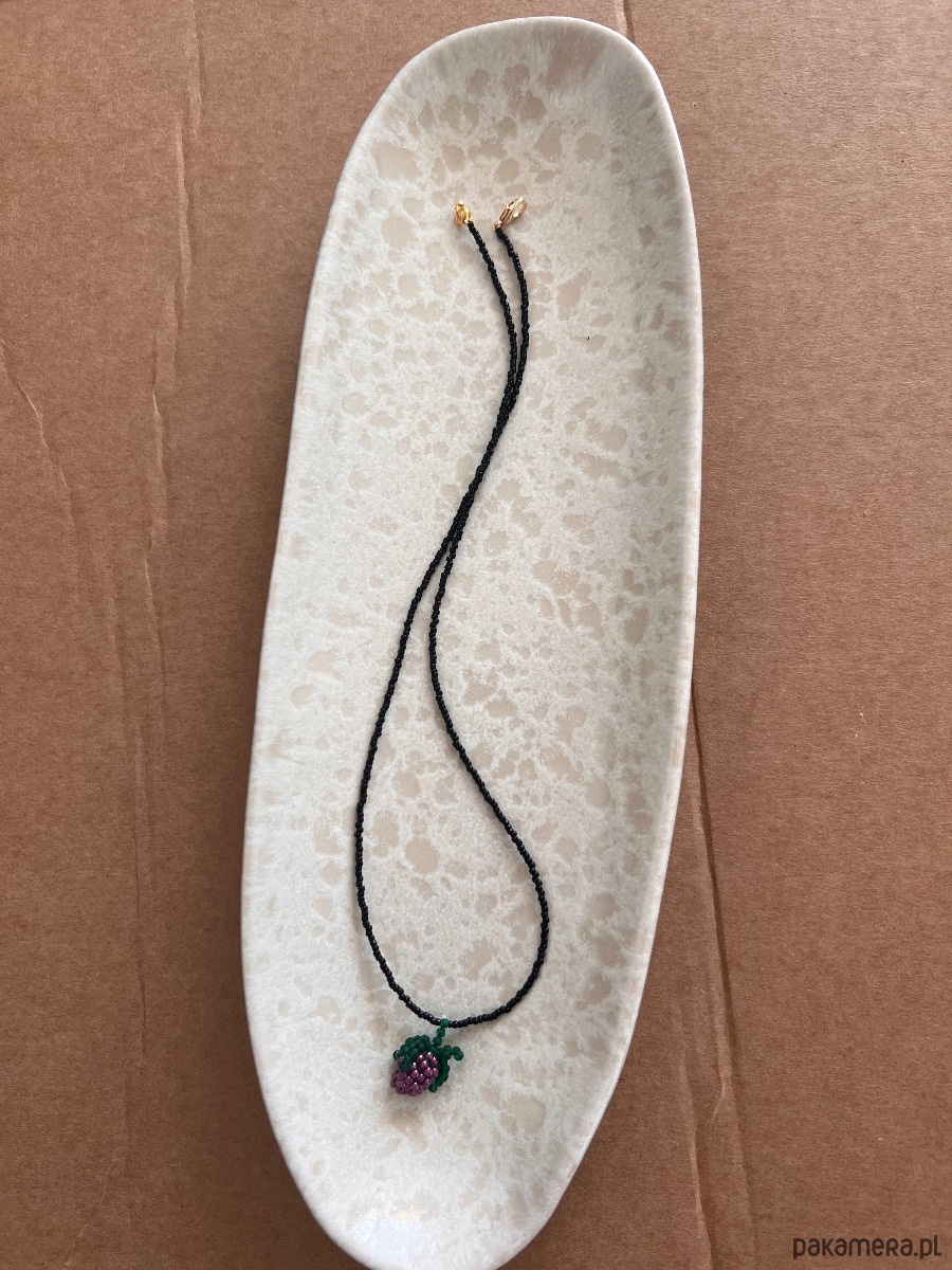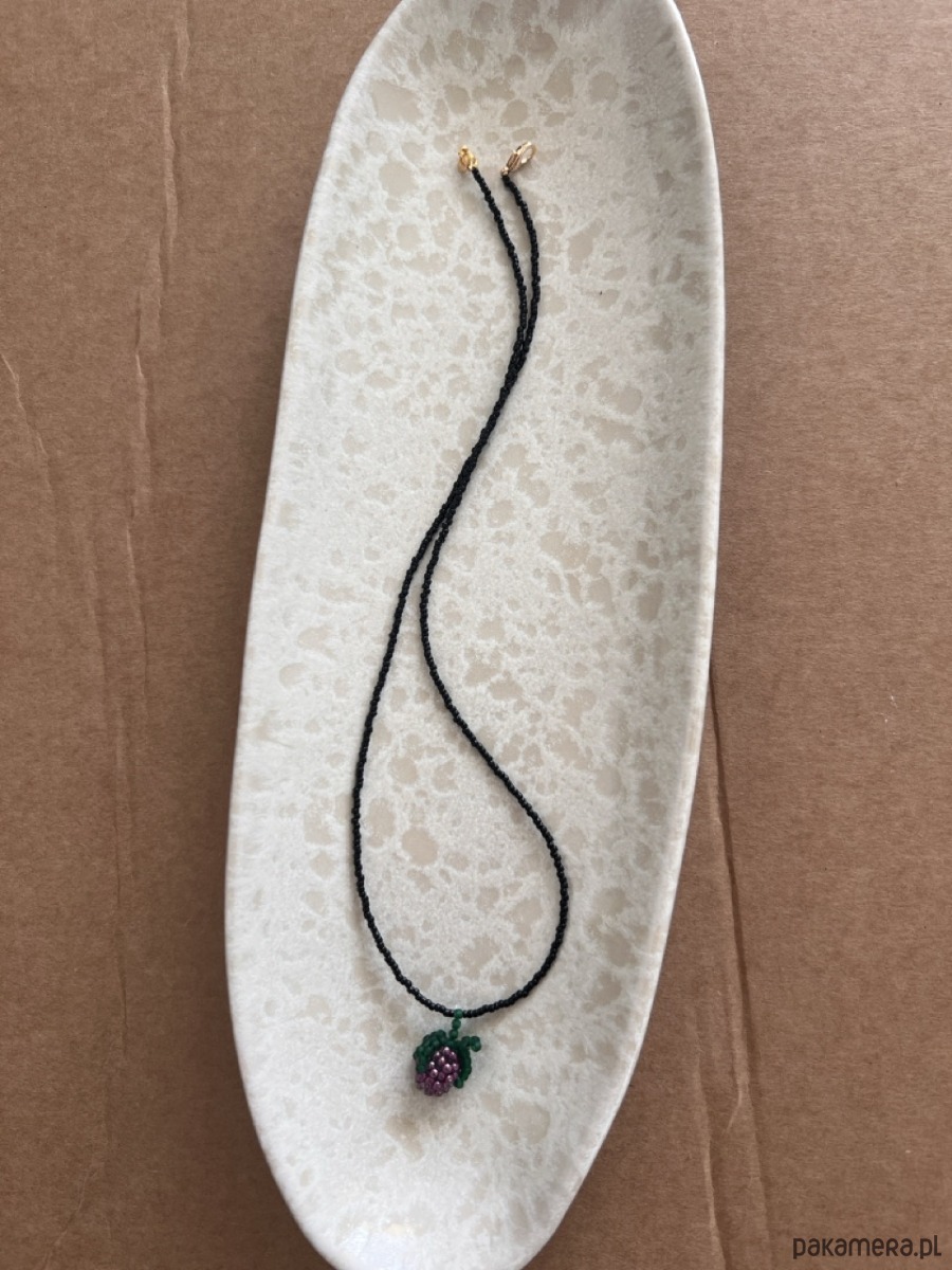 Handmade naszyjnik z koralików z plecionym owocem fioletową jeżyną