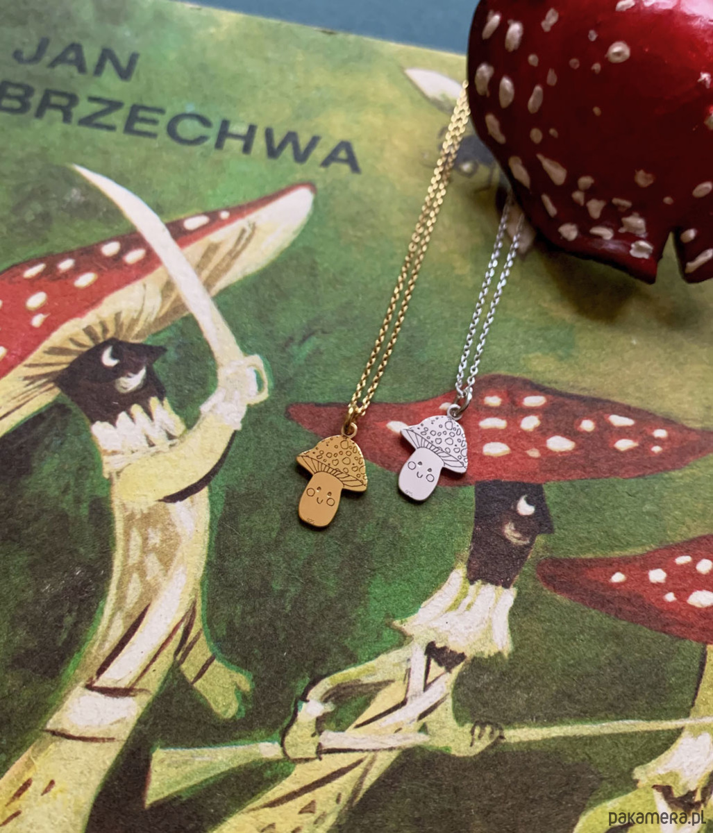 Naszyjnik Muchomorek , to jesienny wzór, a zarazem drugi z serii uśmiechniętych zawieszek inspirowanych lasem.