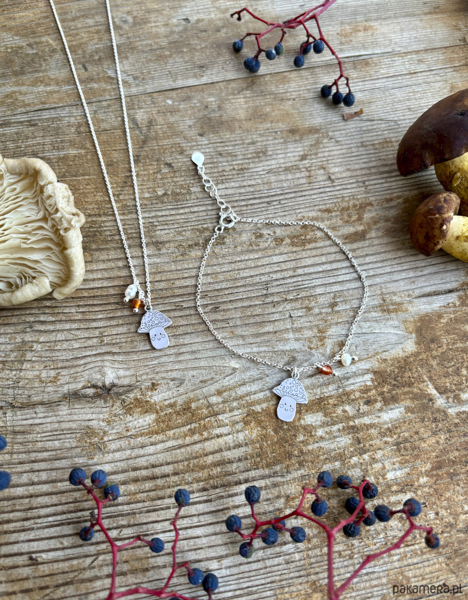 Naszyjnik Muchomorek, jesienny wzór inspirowany lasem.