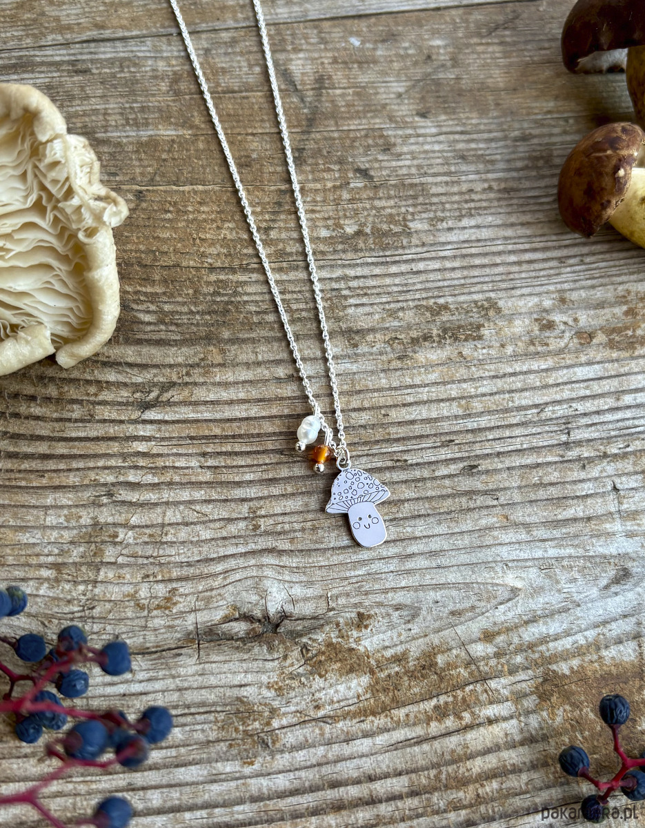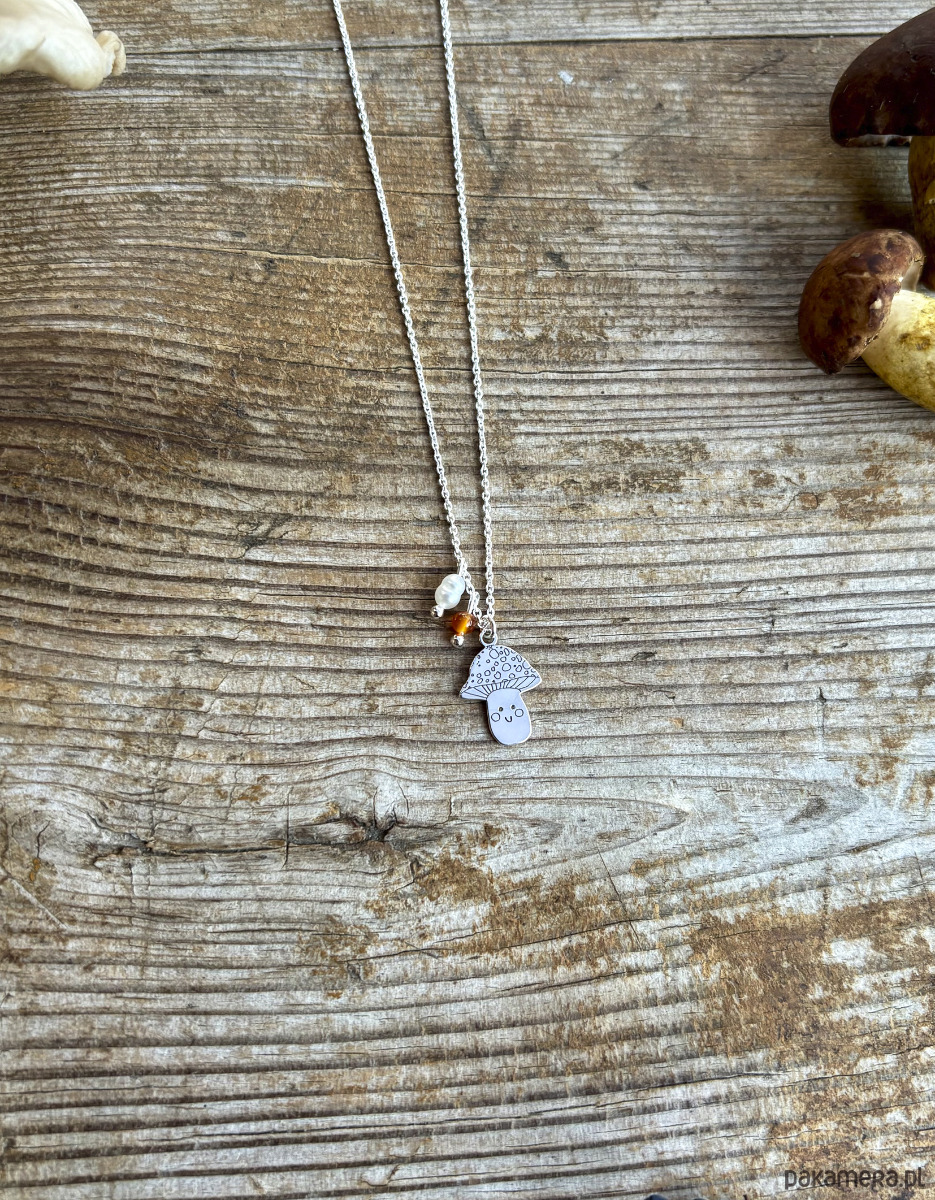 Naszyjnik Muchomorek, jesienny wzór inspirowany lasem.