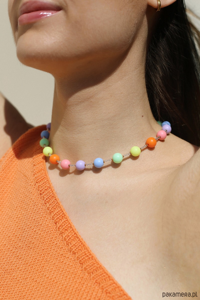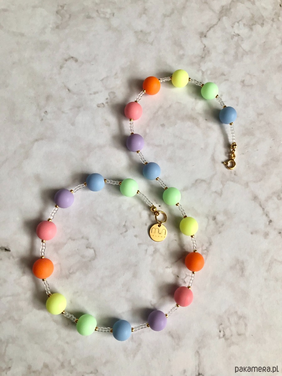 Naszyjnik Happy Colors wykonany jest z wysokiej jakości matowych kolorowych i drobnych przezroczystych koralików. Wszystkie elementy metalowe są z pozłacanego srebra próby 925. To idealny dodatek do letnich stylizacji a tym bardziej dla fanek koloru czy nowoczesnych fasonów.