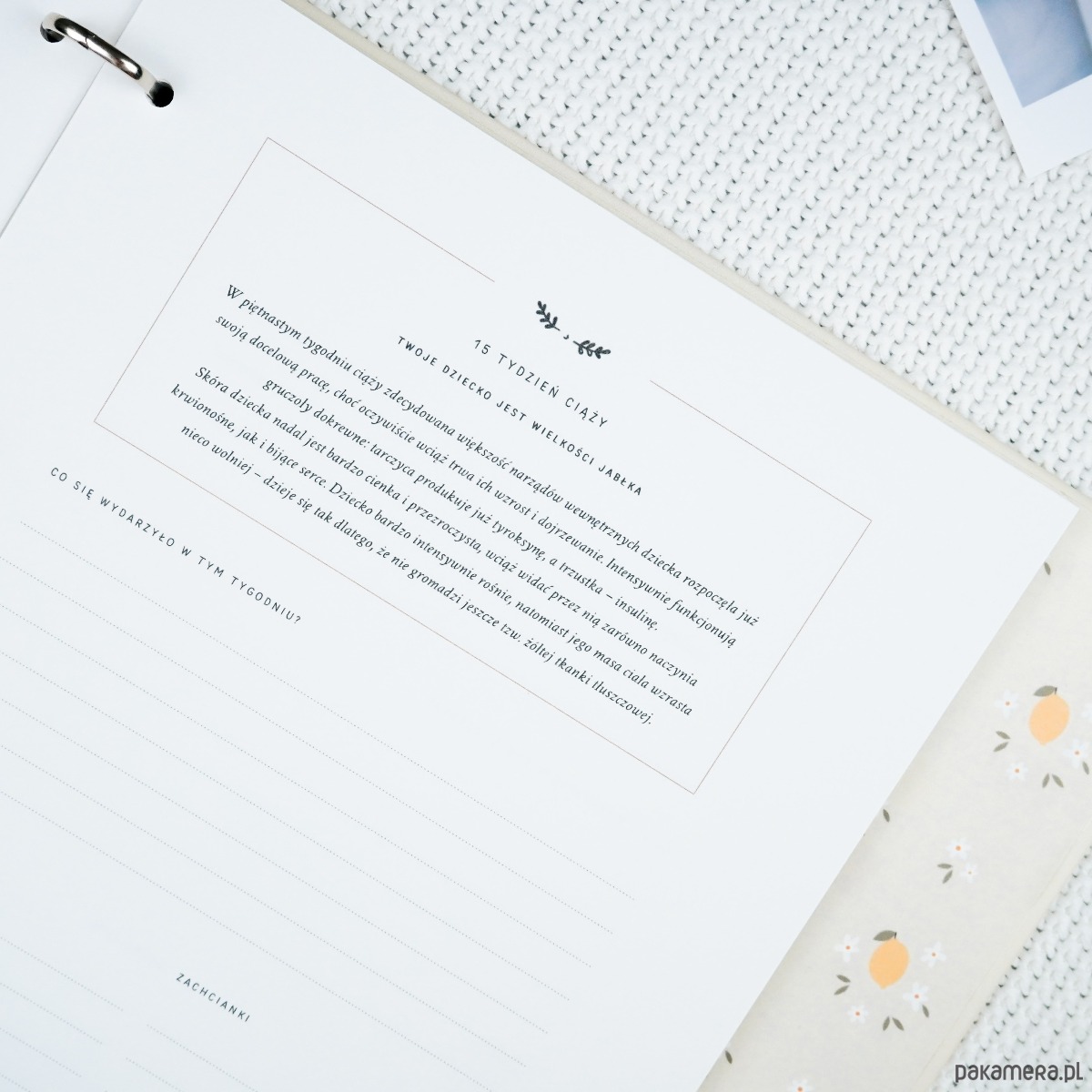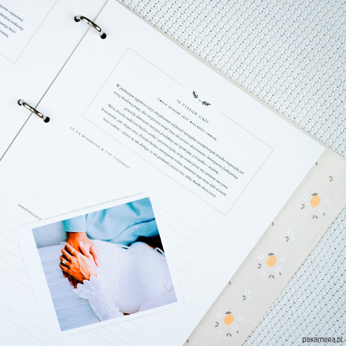 Ciąża to niezwykle ekscytujący czas dla przyszłych rodziców, obfitujący w rozmaite emocje. Każdy dzień przybliża do spotkania z dzieckiem, a nasz pamiętnik jest idealnym towarzyszem w tym czasie. W środku znajdziesz miejsce na pamiątkowe zdjęcia ciążowego brzuszka, przemyślenia, emocje oraz cotygodniowe etapy rozwojowe Twojego maleństwa. Pamiętnik Ciąży będzie wspaniałą pamiątką dla dziecka (i rodziców), która pozwoli w kilka chwil wrócić do wspomnień, które mają tak wielkie znaczenie.