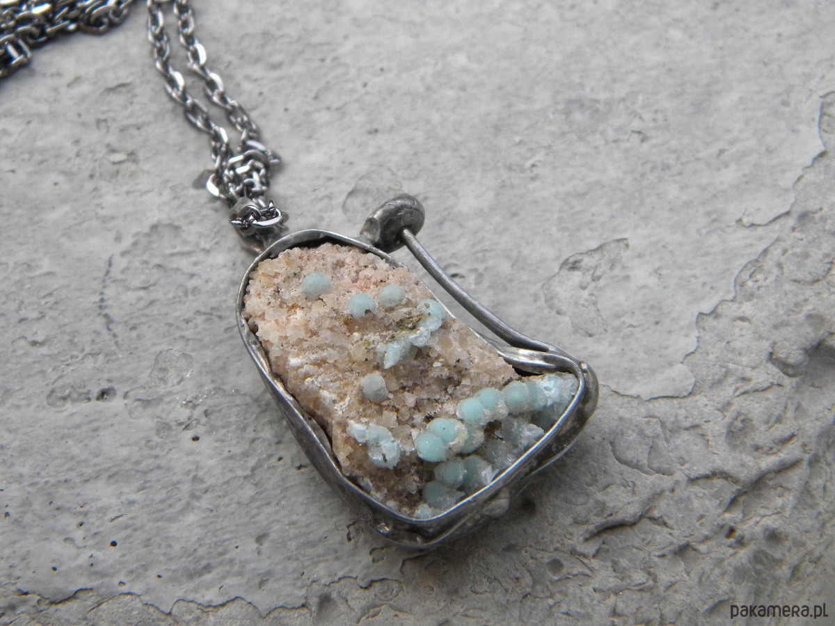 wisior jest dwustronny, kryształy znajdują się na obydwu stronach