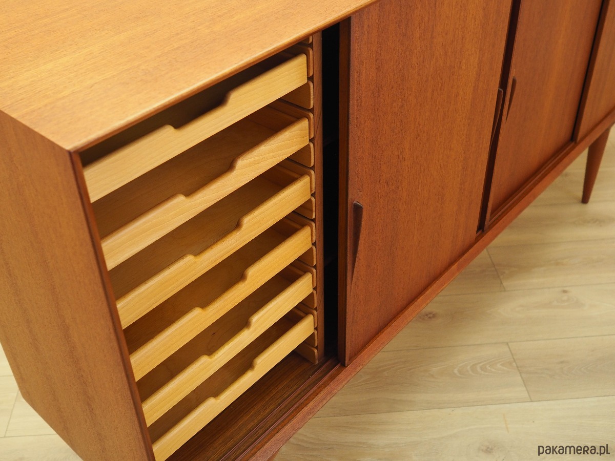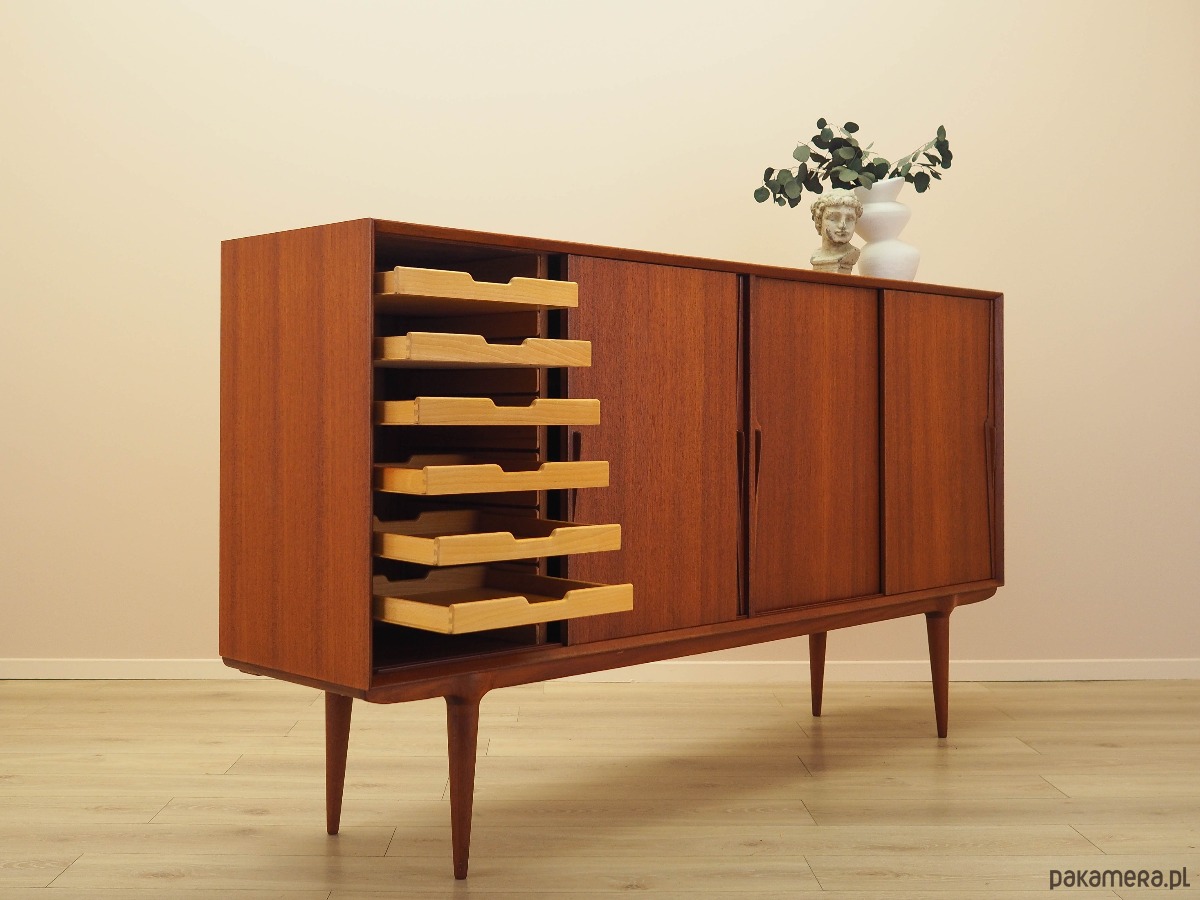 Highboard tekowy, duński design, lata 70, producent: Omann Jun