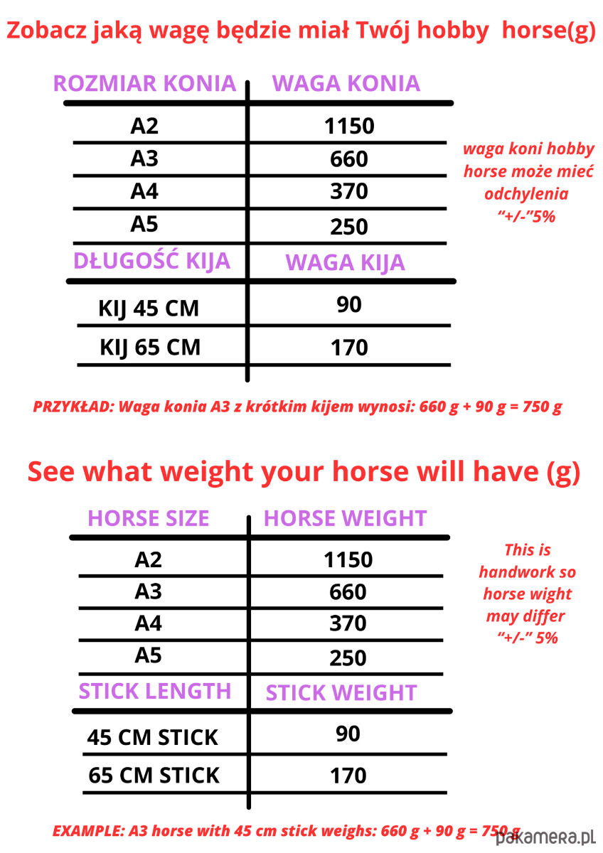 Hobby Horse to nasz Bestseller, dostępny w czterech rozmiarach (A2-A5) dla jeszcze lepszego dopasowania do Twoich potrzeb. Oferujemy także możliwość wyboru długości kija, co pozwala na pełną personalizację produktu.