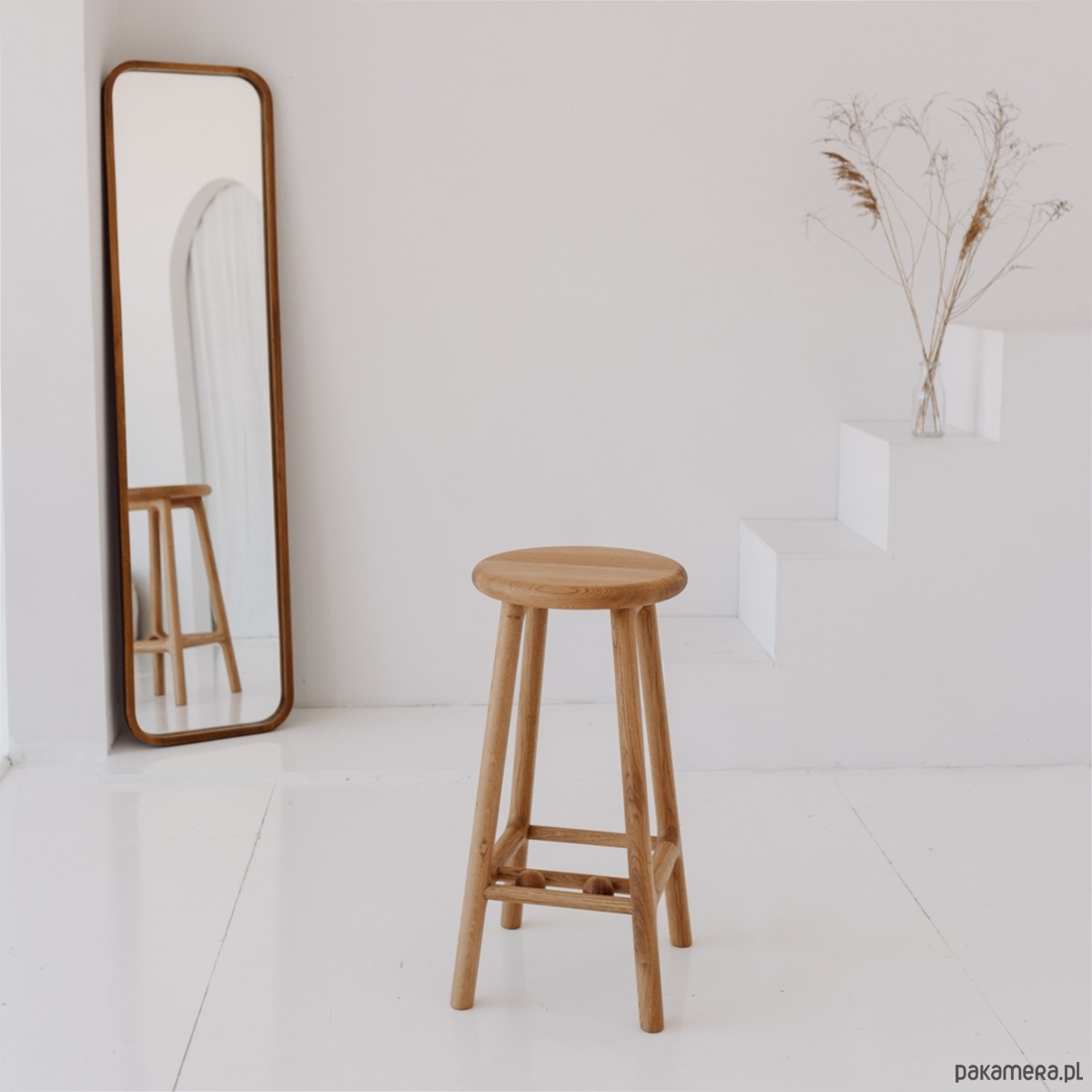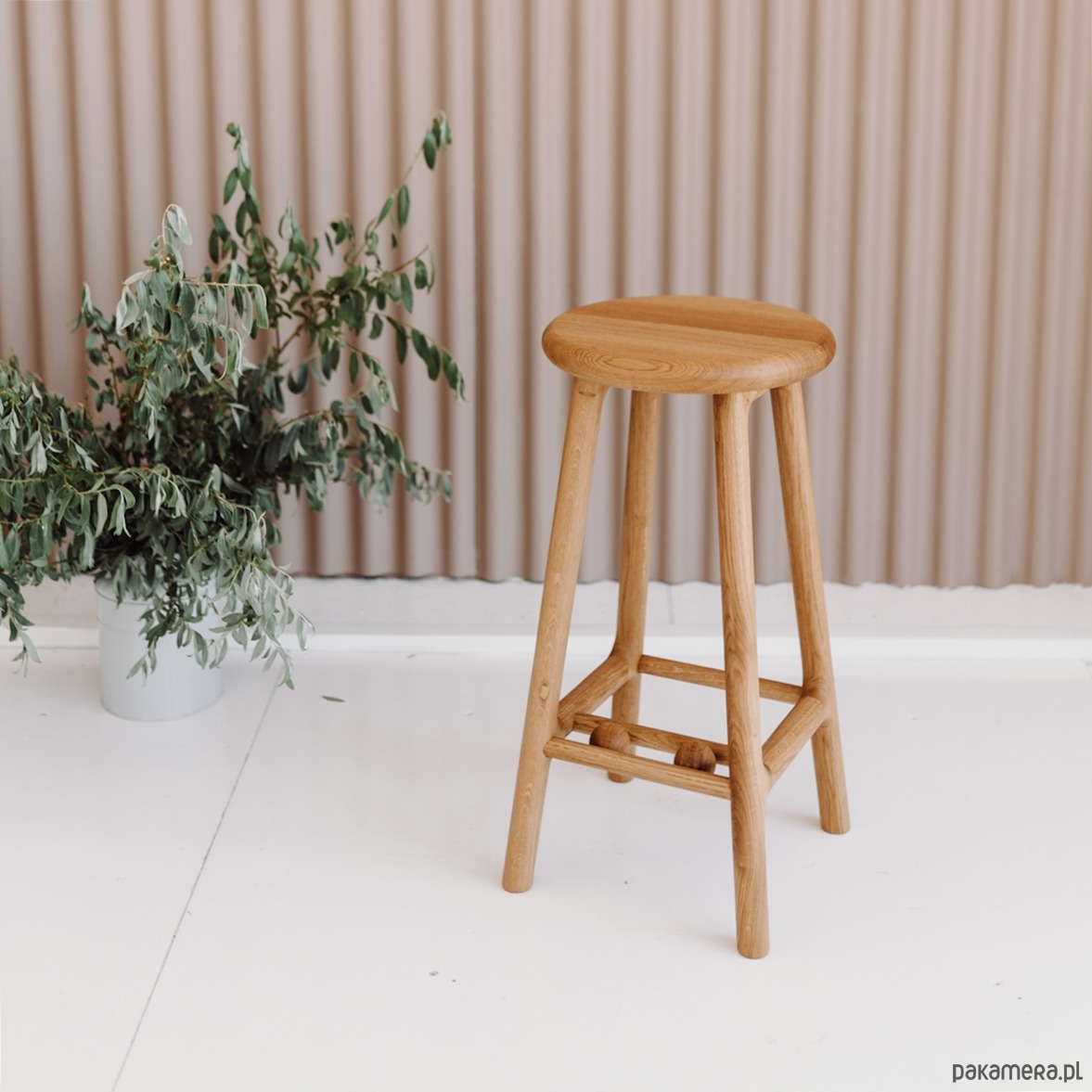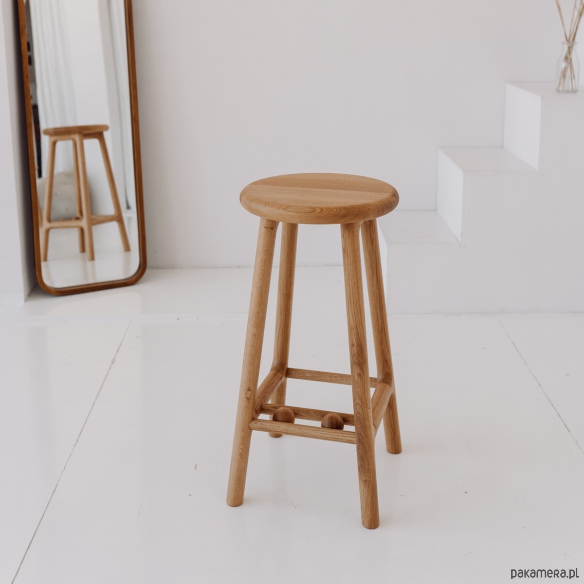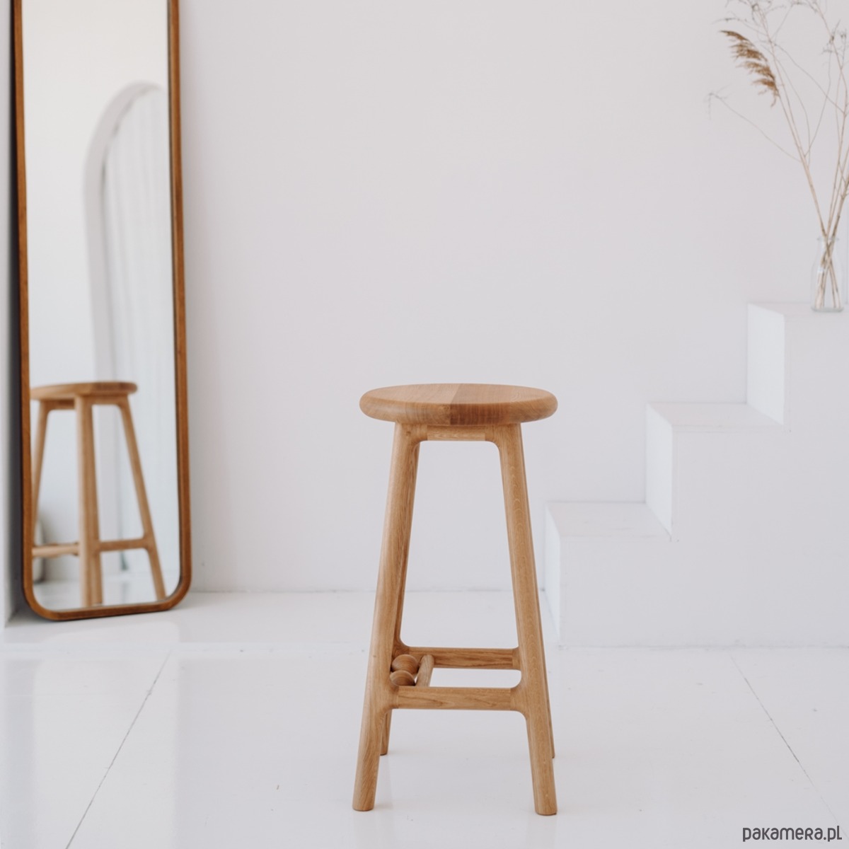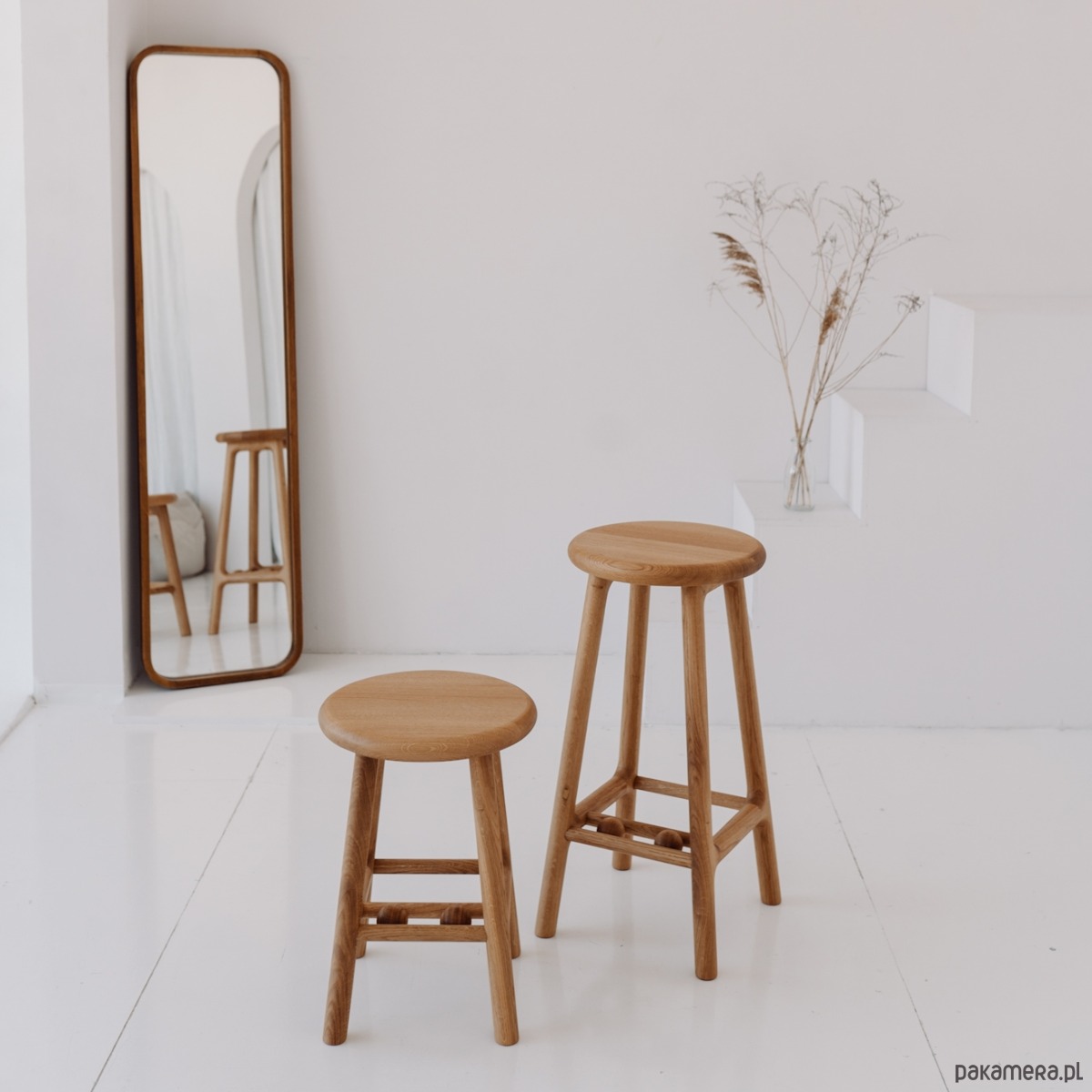 Okrągły hoker OLIO to mebel stworzony z myślą o codziennym użytkowaniu, ale bez kompromisów w kwestii estetyki. Łączy w sobie miękką linię zaokrąglonych krawędzi z twardym charakterem litego drewna dębowego. Idealny jako dodatkowe siedzisko w kuchni, przedpokoju, albo kwietnik.