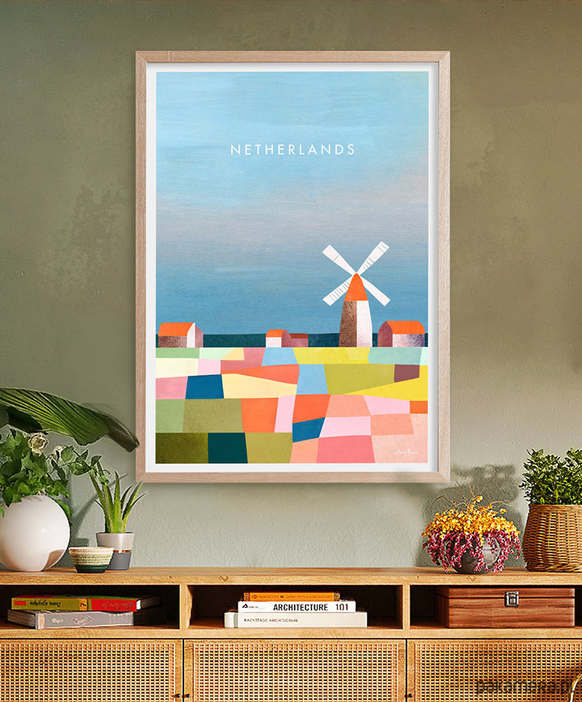 Plakat Holandia - pola kwiatowe to kolorowa grafika, która podkreśli charakter każdego wnętrza. Sielski obraz przełamany został nowoczesnym stylem grafiki.