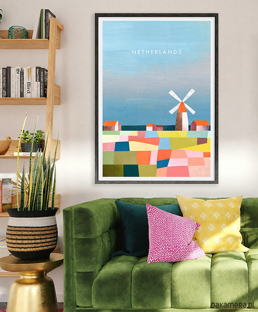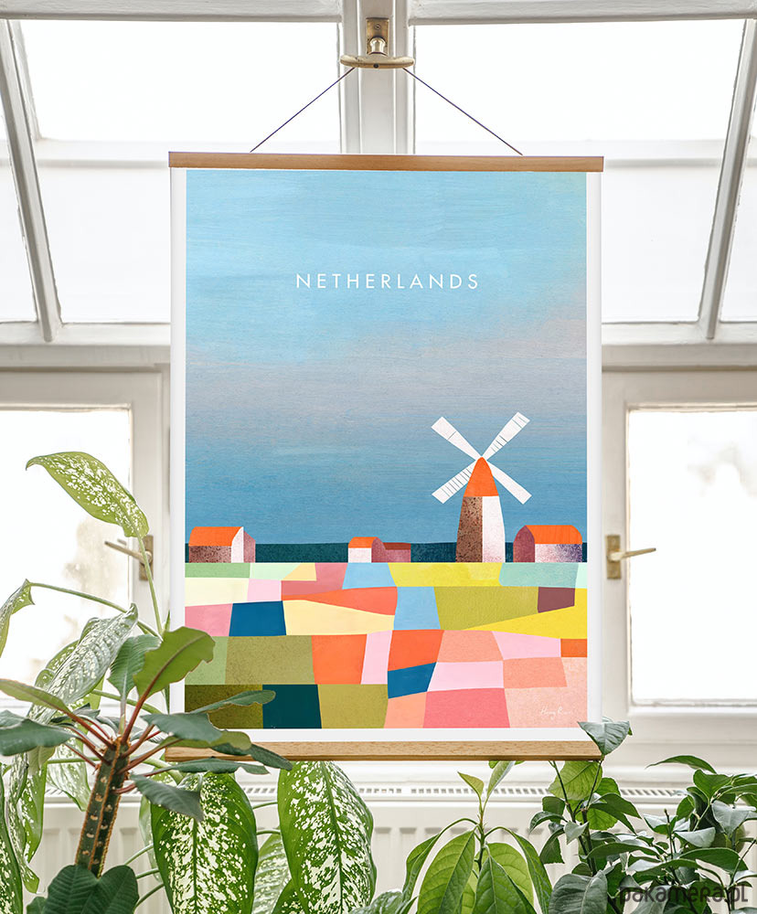 Plakat Holandia - pola kwiatowe to kolorowa grafika, która podkreśli charakter każdego wnętrza. Sielski obraz przełamany został nowoczesnym stylem grafiki.