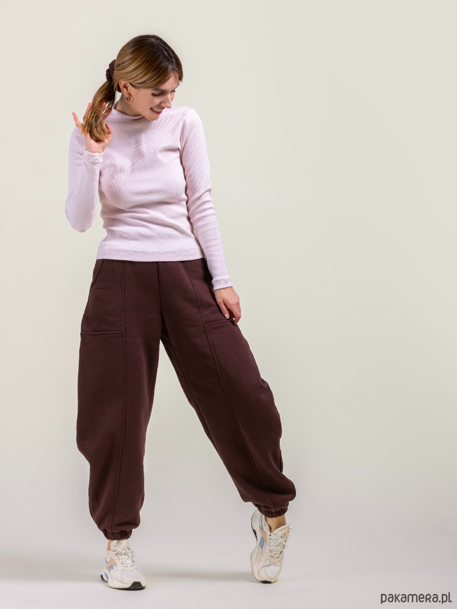 Arcywygodne, baloon'owe spodnie w głębokim odcieniu gorzkiej czekolady.