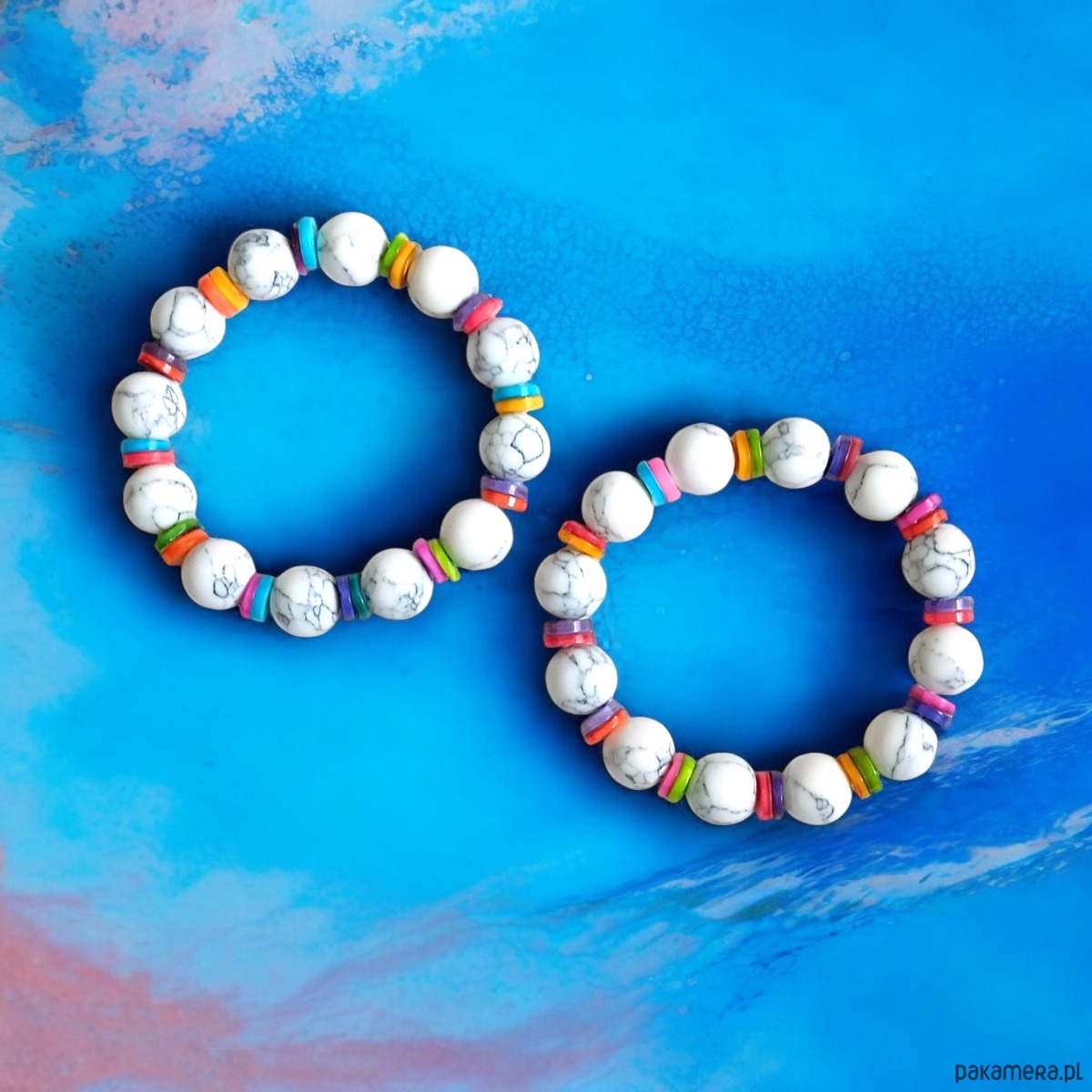 HOT TREND : bransoletka : summer collection : howlit 12mm, kolorowa muszla