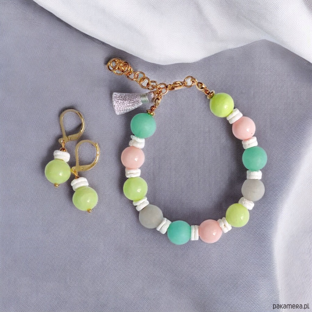 HOT TREND : komplet : bransoletka, kolczyki : pastelle : jadeit 10mm