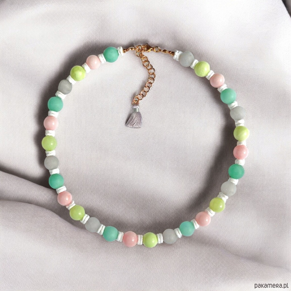 HOT TREND : naszyjnik : pastelle collection : jadeit 10mm, muszla biała