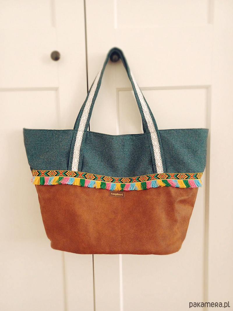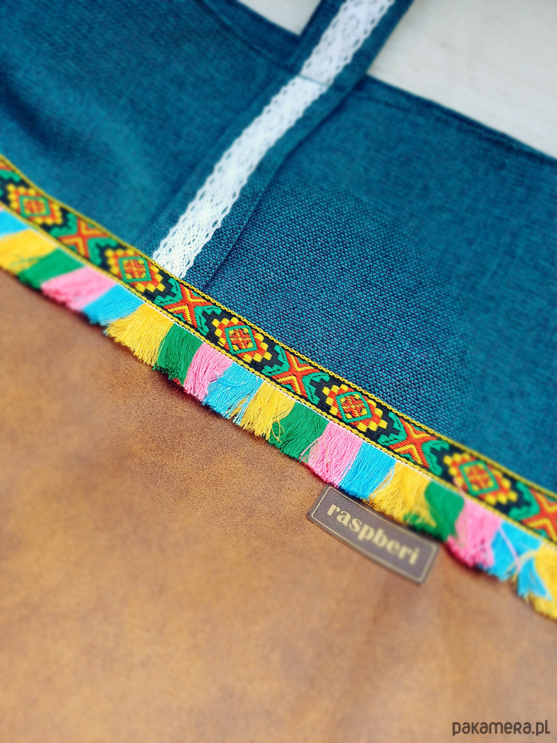 Dodatki w postaci kolorowych frędzelków oraz koronkowych tasiemek sprawiają, że torba jest nietuzinkowa i jedyna w swoim rodzaju.