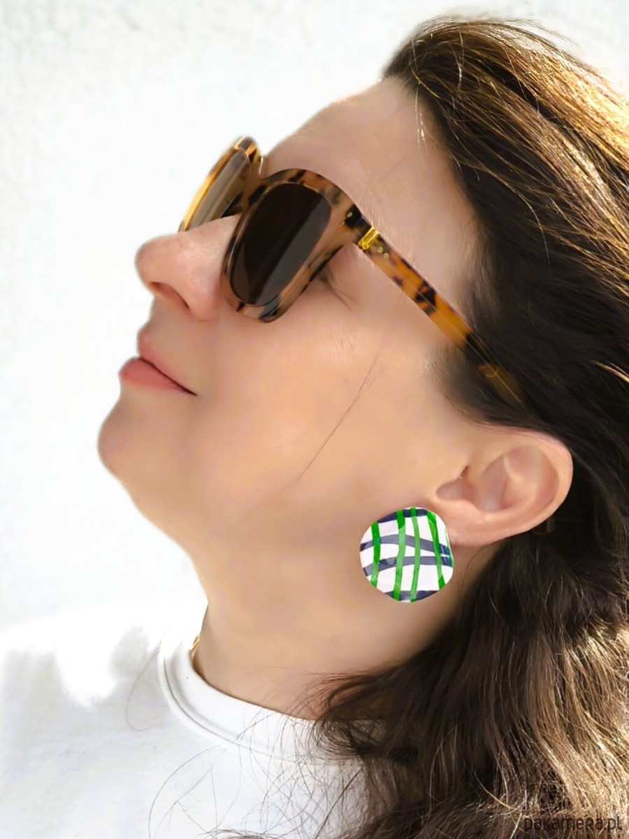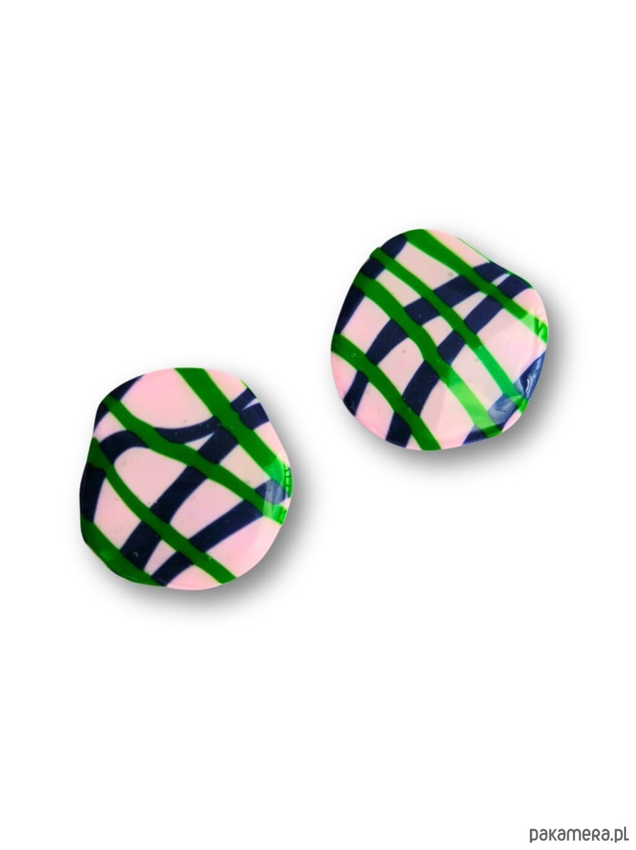 Kolczyki HULA w krateczkę na sztyfcie w kształcie organicznego koła z połyskiem