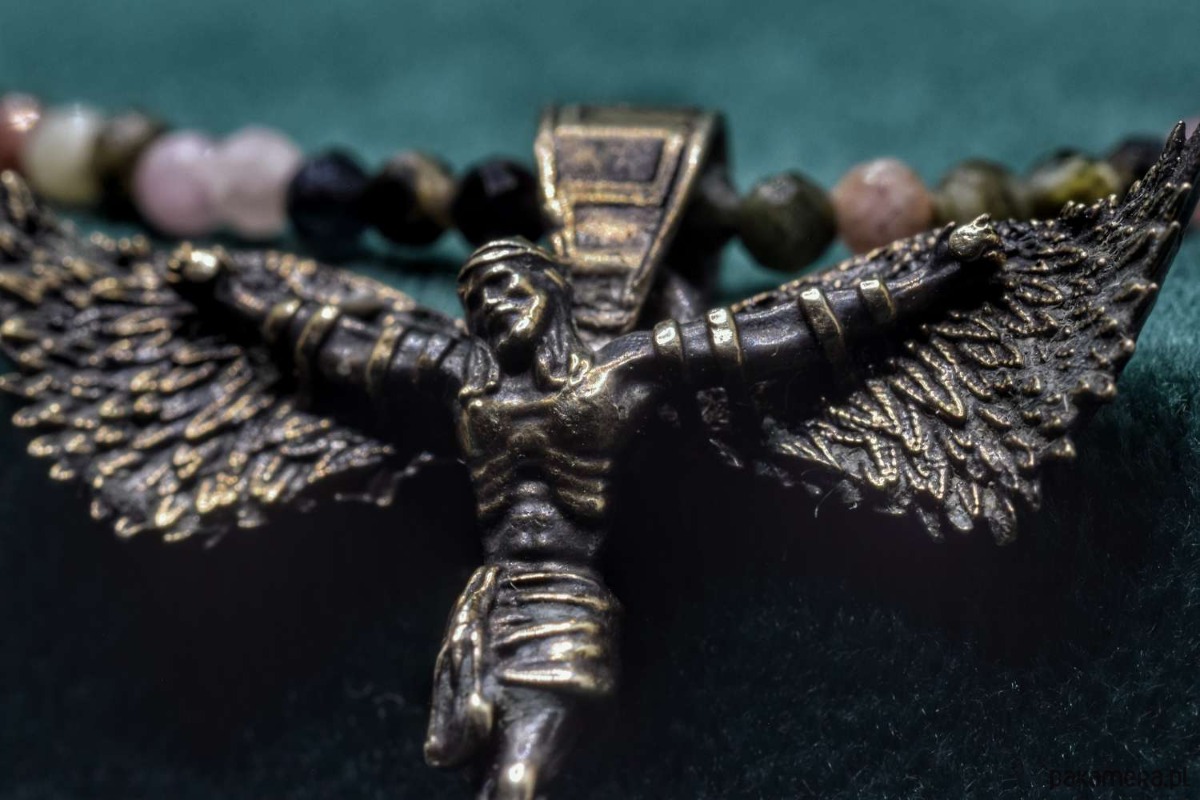 "Icarus-Christus" - Mały naszyjnik z brązu z naturalnymi kamieniami