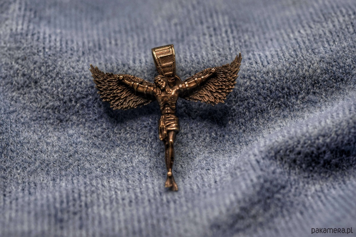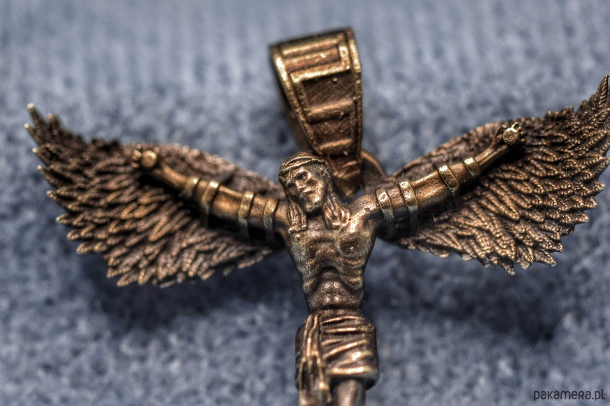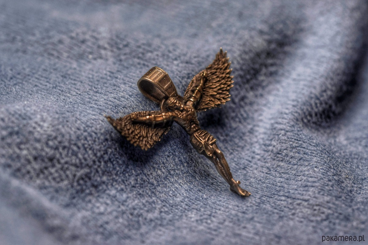Mały wisiorek z projektu "Icarus-Christus". Odlany w brązie. Struktura dodatkowo podkreślona oksydą. Zdjęcia przedstawiają jedną ze sztuk co oznacza, że w drobnych szczegółach mogą się one od siebie różnić.