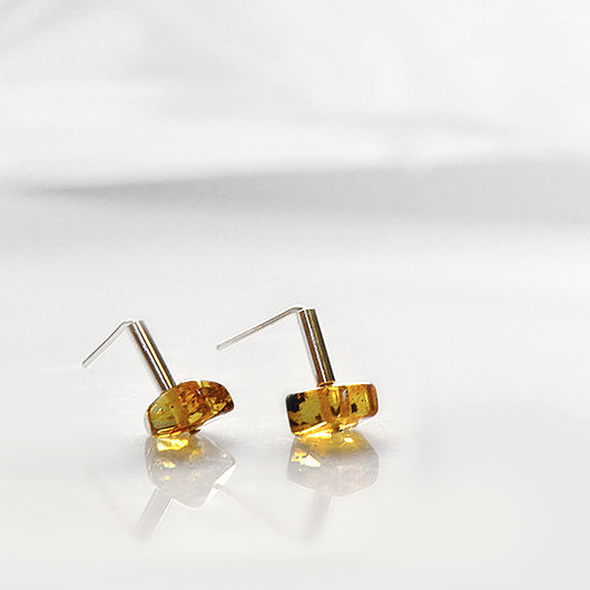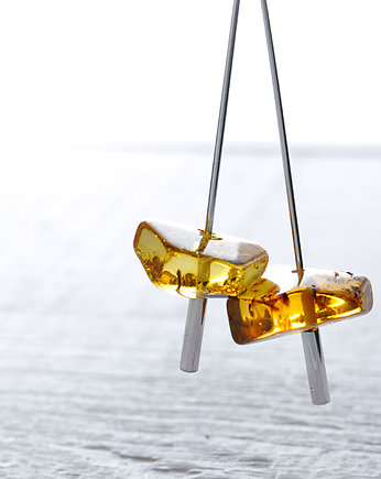 Delikatne, minimalistyczne srebrne kolczyki z bursztynami bałtyckimi.