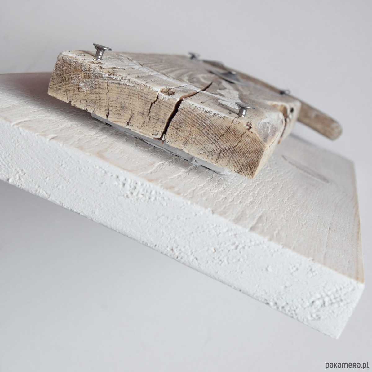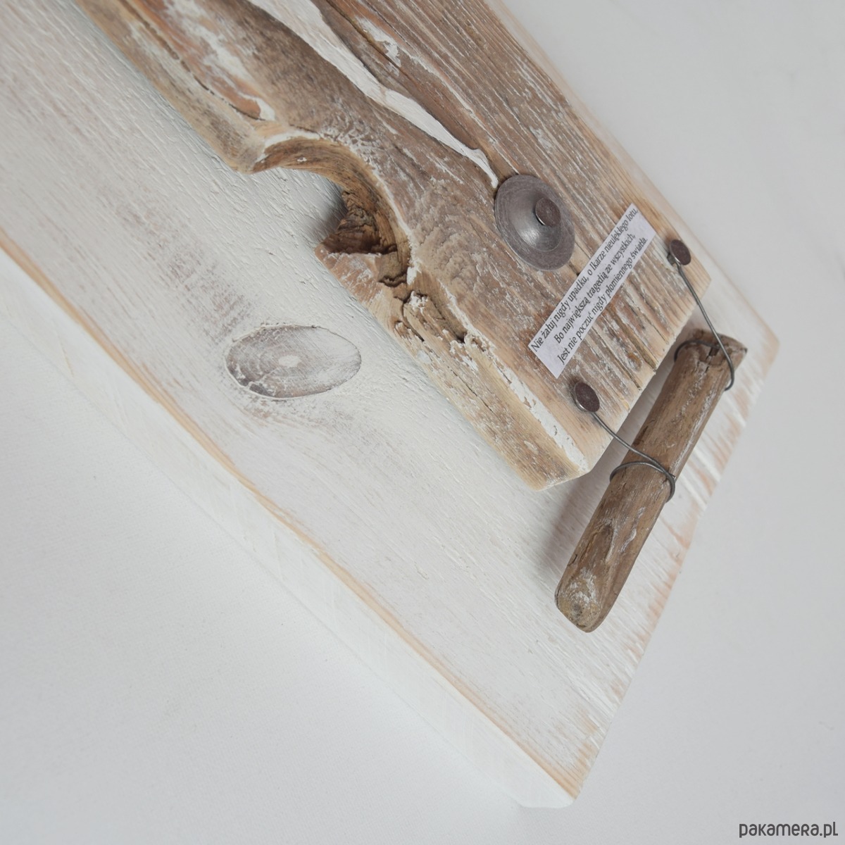 Obraz w technice mieszanej, malowany farbami akrylowymi na starej desce przymocowanej do kawałka deski sosnowej. W projekcie wykorzystane są również metalowe elementy industrialne - gwoździe, podkładka, drut, a także kawałek drewna z bałtyckiej plaży oraz cytat - jego autorem jest (prawdpodobnie) Oscar Wilde.