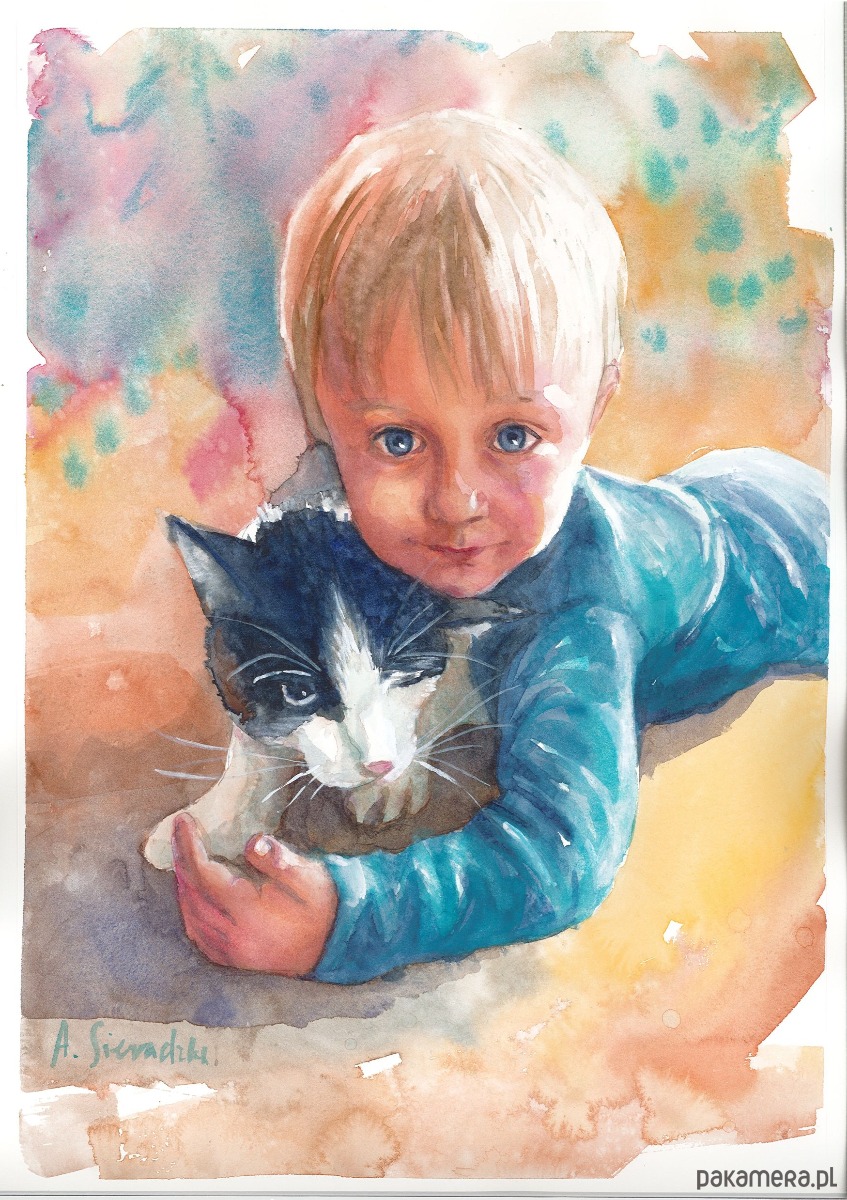 Uchwycić radosne chwile - ilustracja ręcznie malowana w technice akwarelowej, gwasz lub mieszana, na zamówienie na podstawie nadesłanego zdjęcia *.