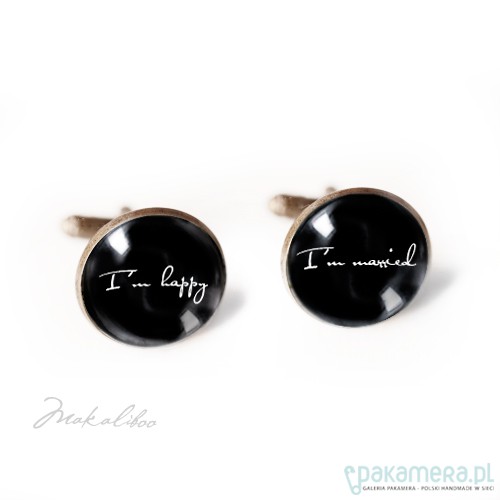 Wybierz sympatyczne spinki do mankietów - idealne na prezent nie tylko dla Pana Młodego. Autorska grafika ukryta pod 18 mm szkiełkiem , baza spinek w tonacji starego złota. Wszystkie prawa zastrzeżone.