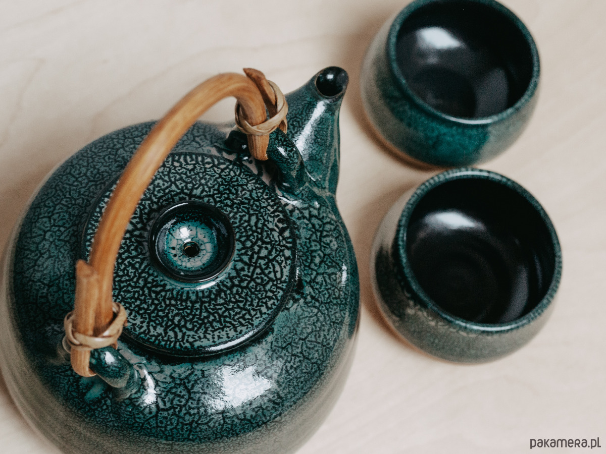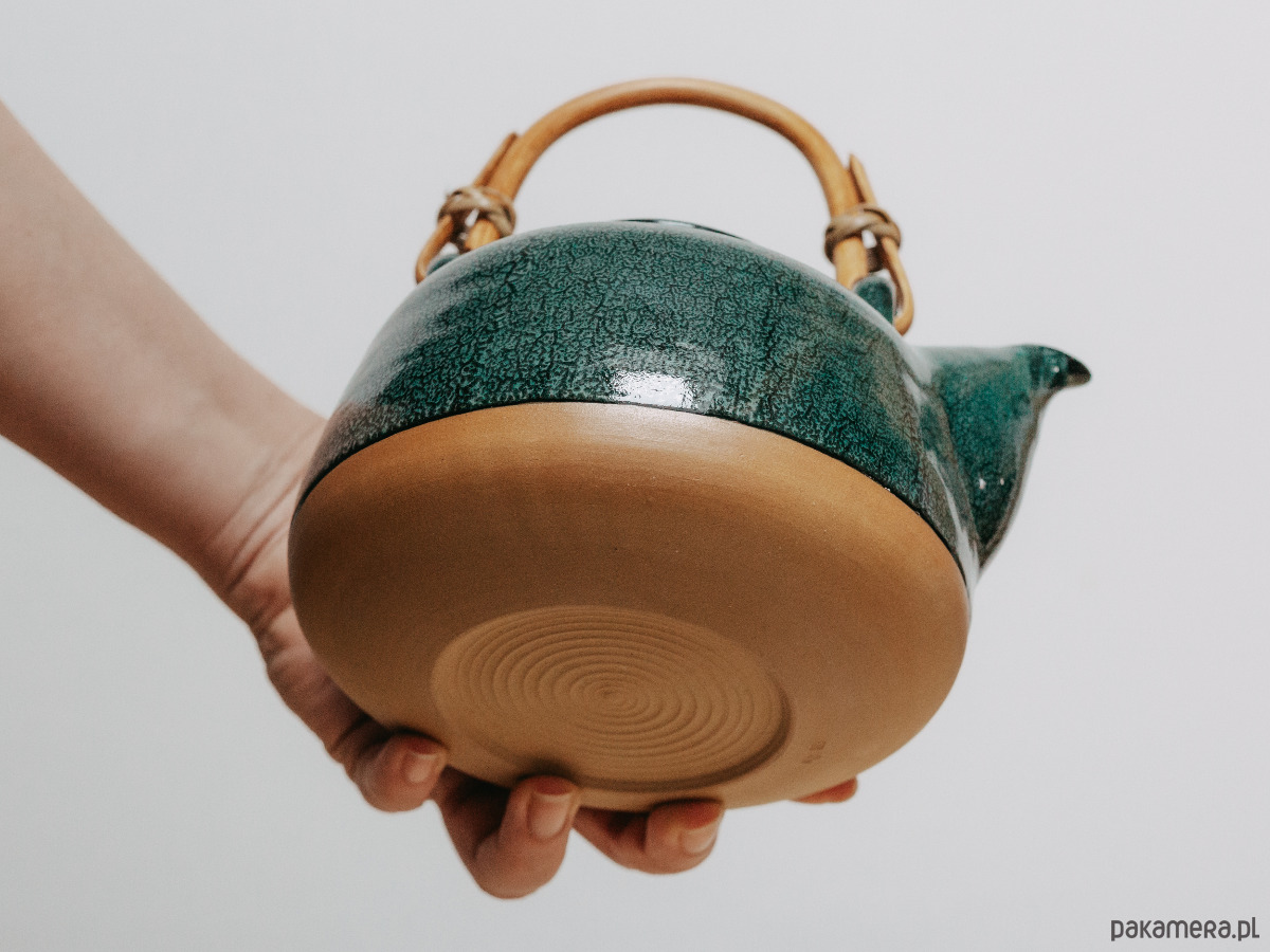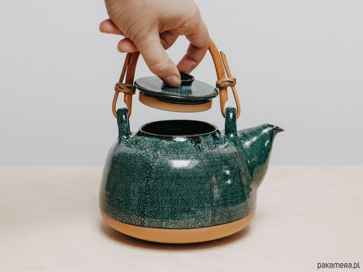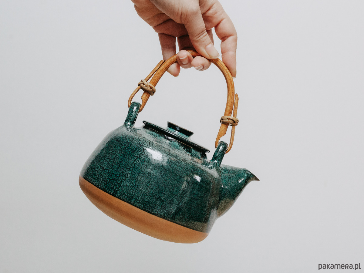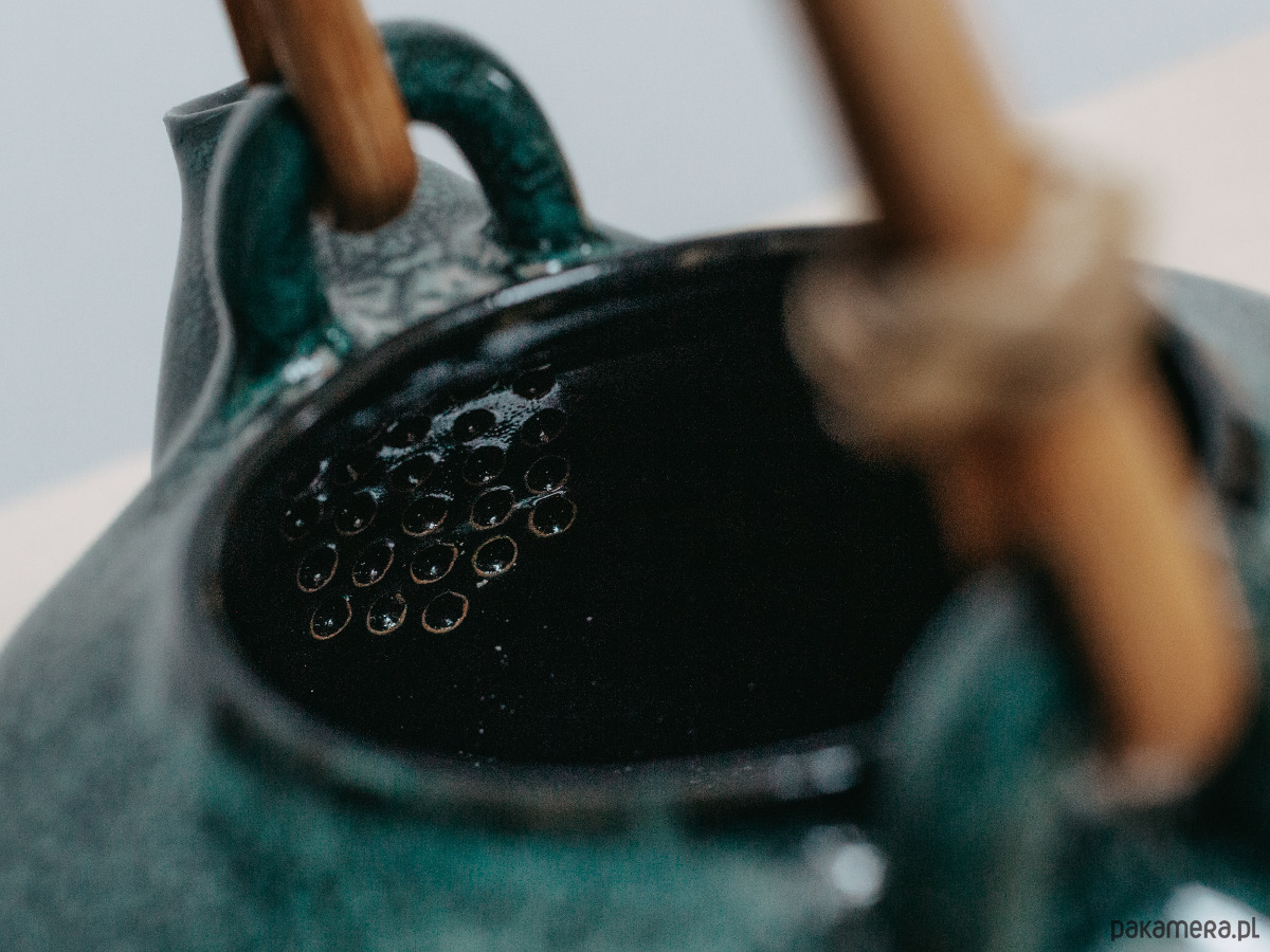 Sam imbryk ma wbudowane sitko oraz rattanową rączkę. Jego pojemność to 1L. Ze względu na nie-ceramiczną rączkę rekomenduję myć ręcznie.