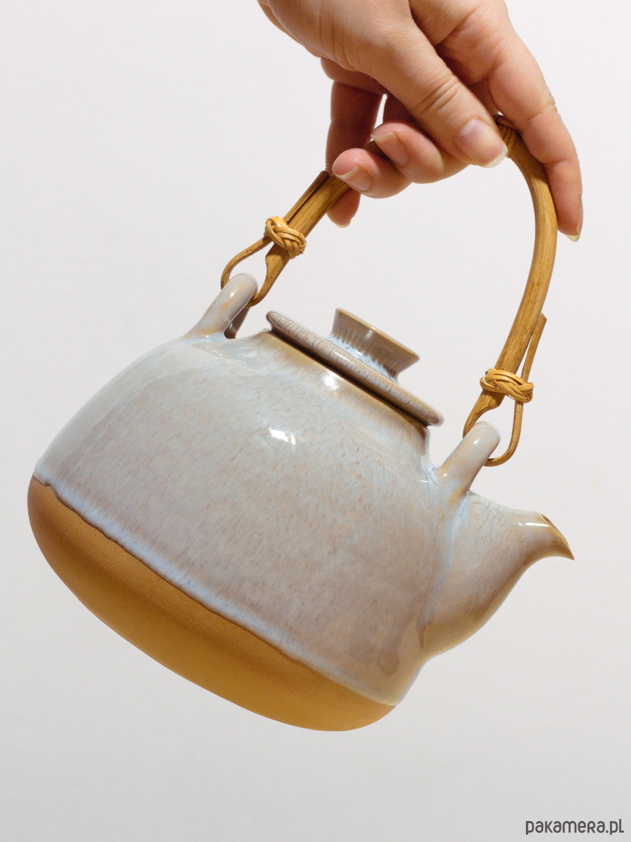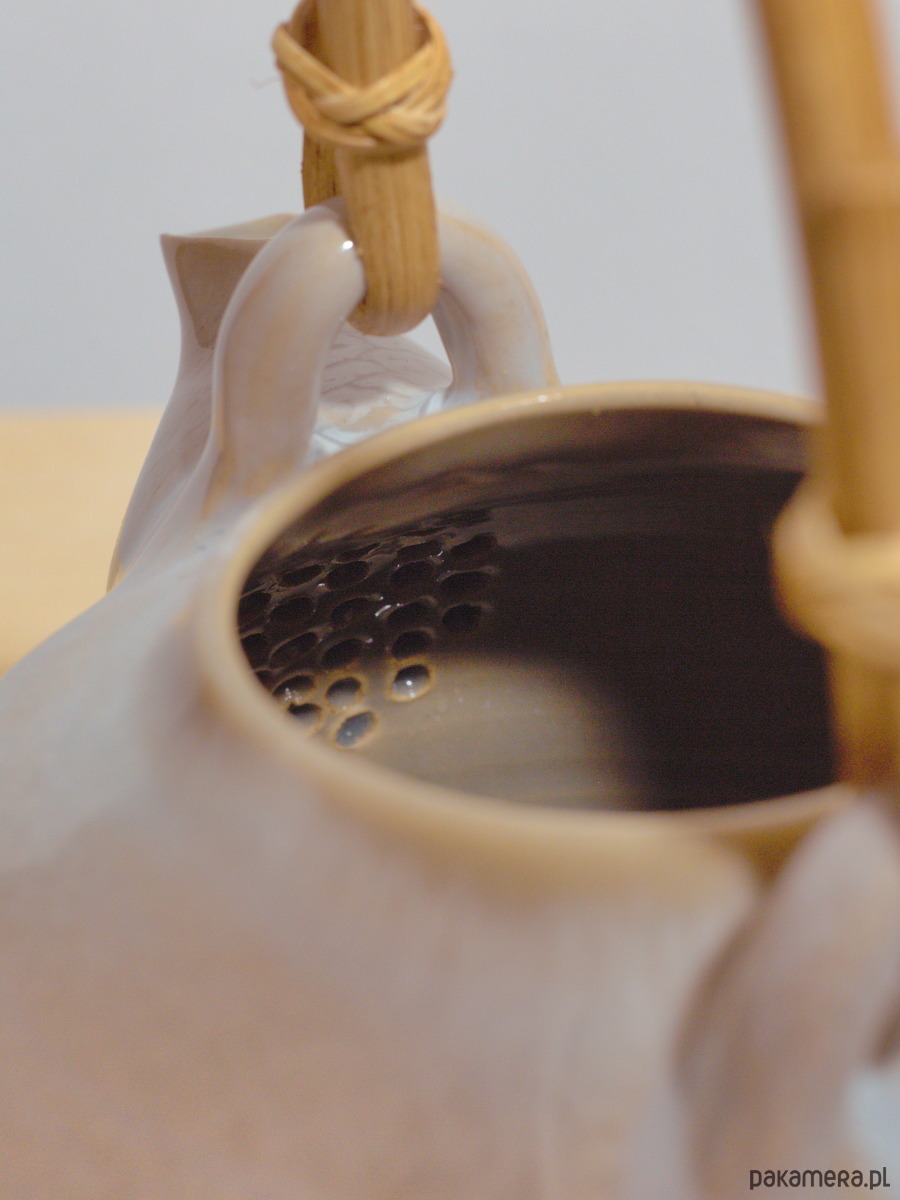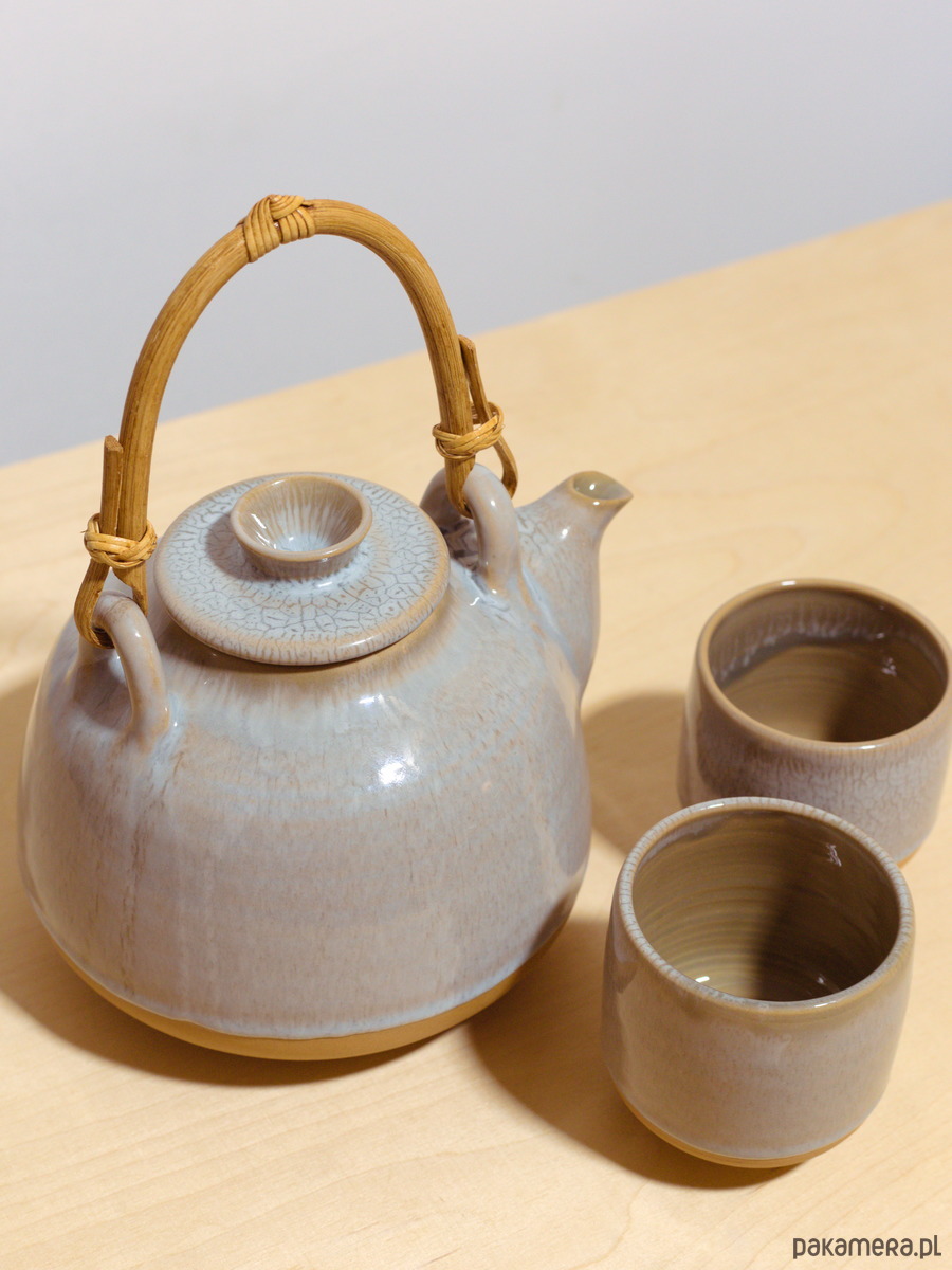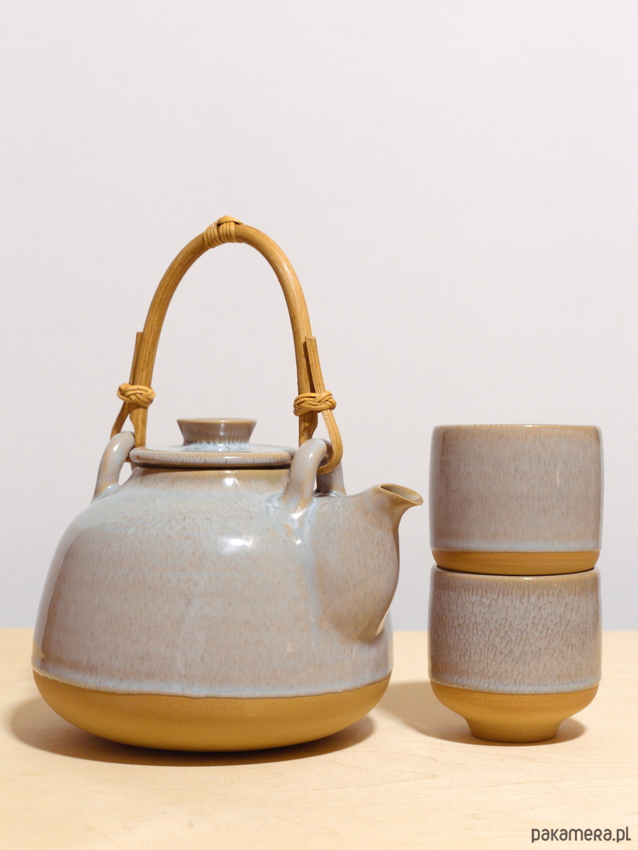 Sam imbryk ma wbudowane sitko oraz rattanową rączkę. Jego pojemność to 1L. Ze względu na nie-ceramiczną rączkę rekomenduję myć ręcznie.