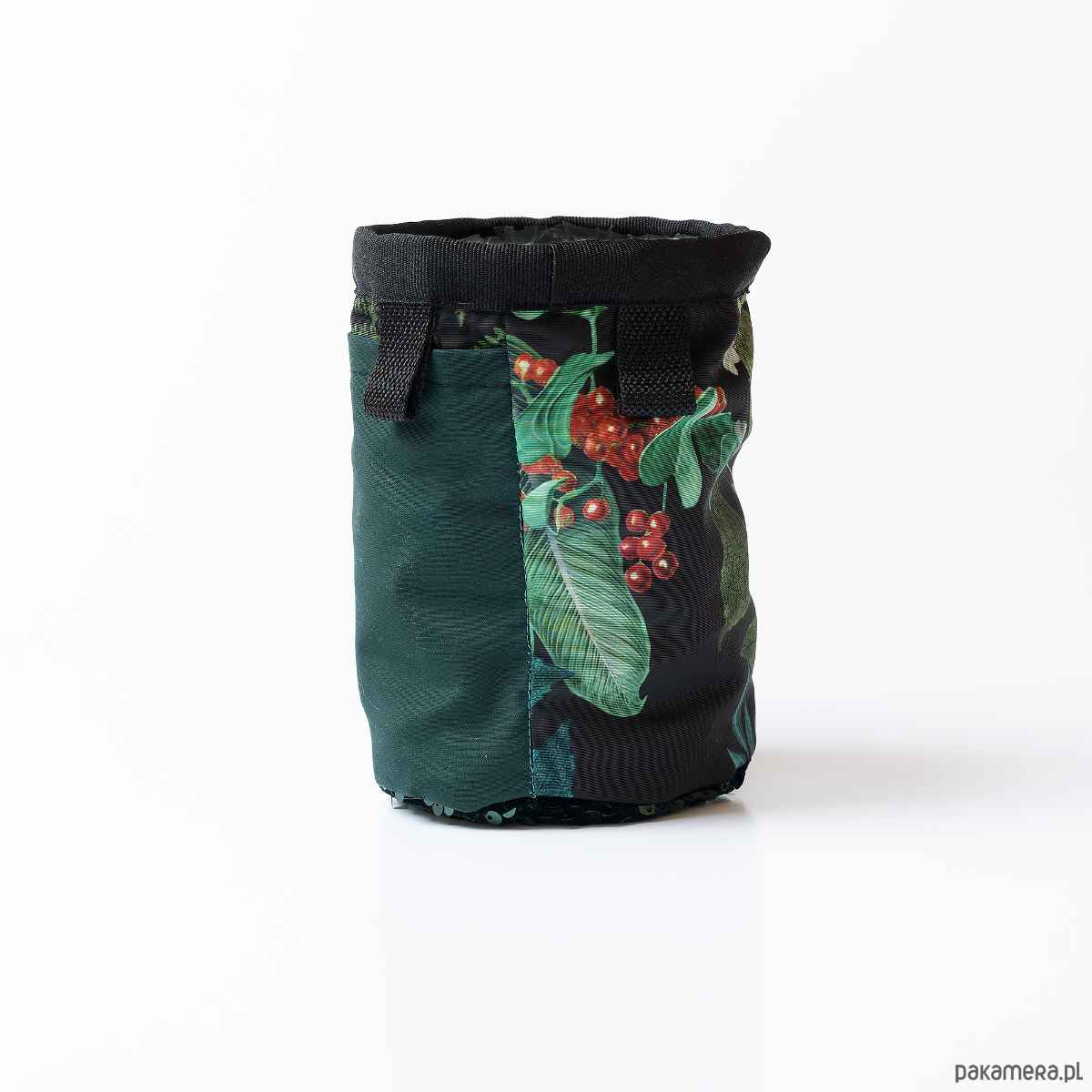 Woreczek wspinaczkowy na magnezję wykonany z różnej jakości tkanin.