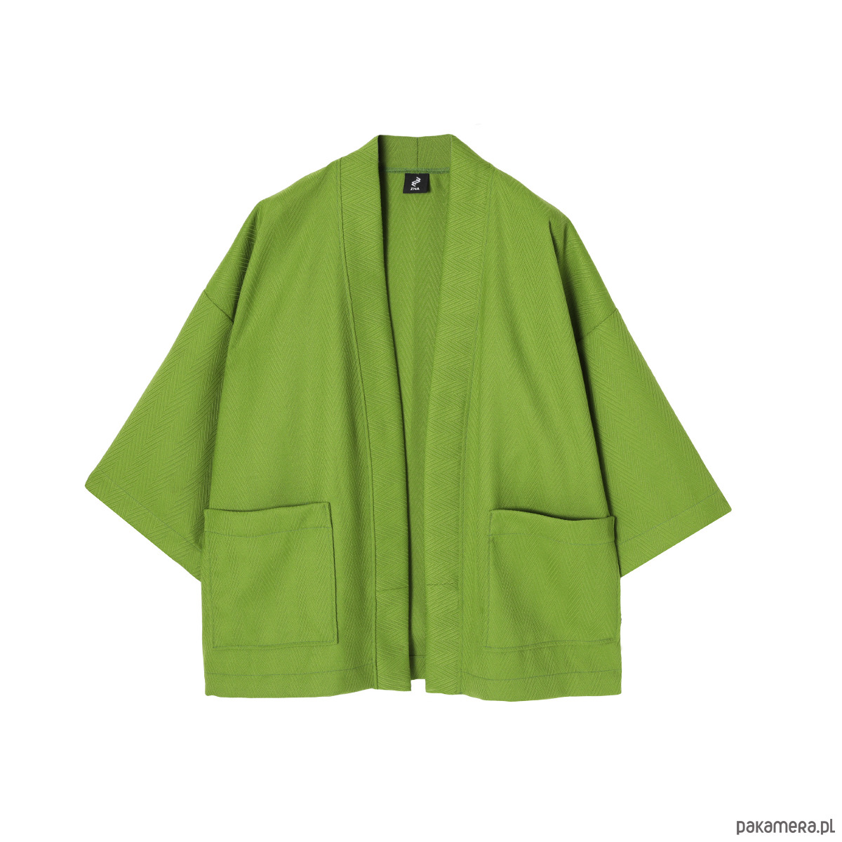 Atutem kimono jest nie tylko jego soczysty kolor, ale też ciekawa struktura tkaniny, z której zostało wykonane.