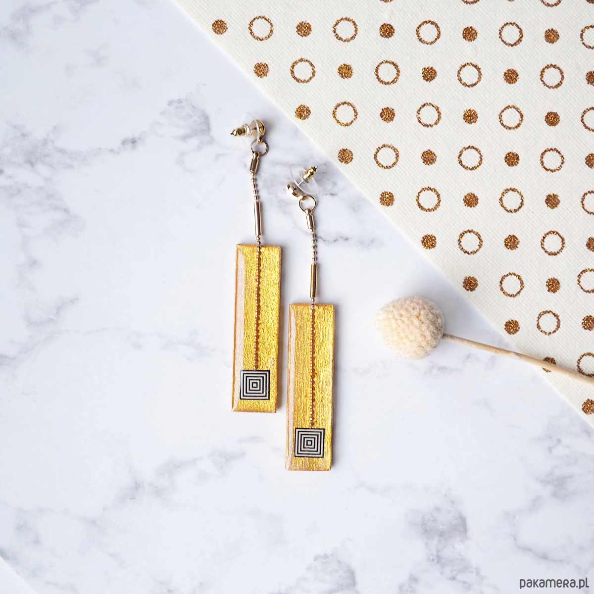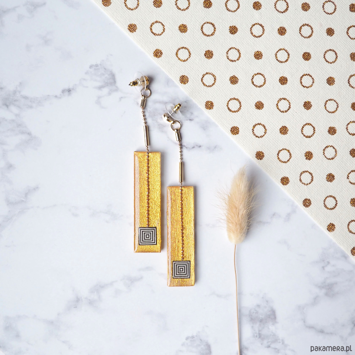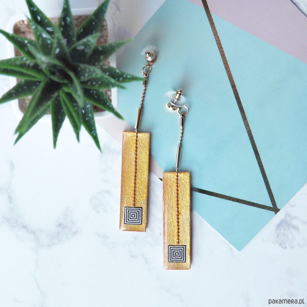 INDUSTRIAL GOLD -ARTYSTYCZNE KOLCZYKI wiszące na sztyfcie