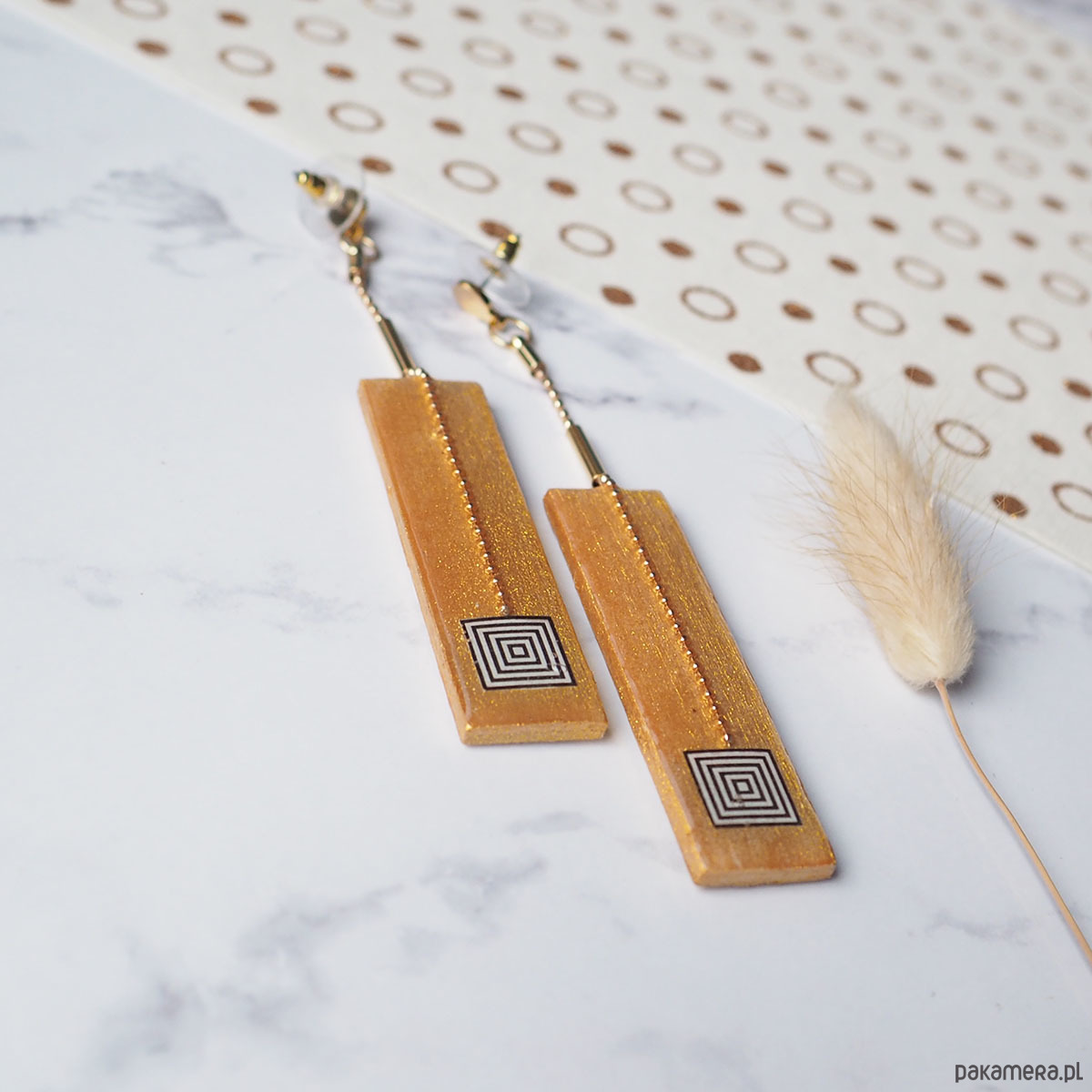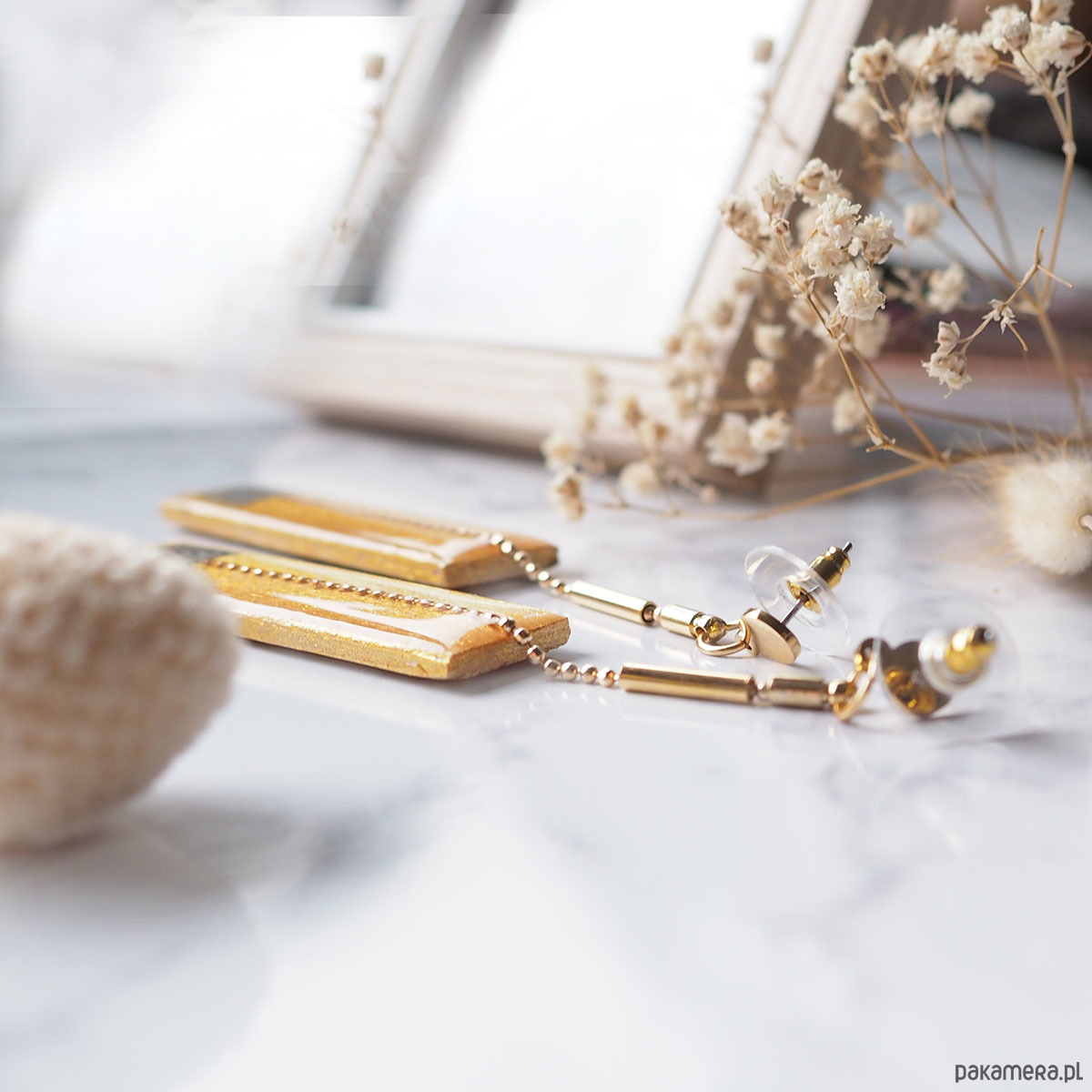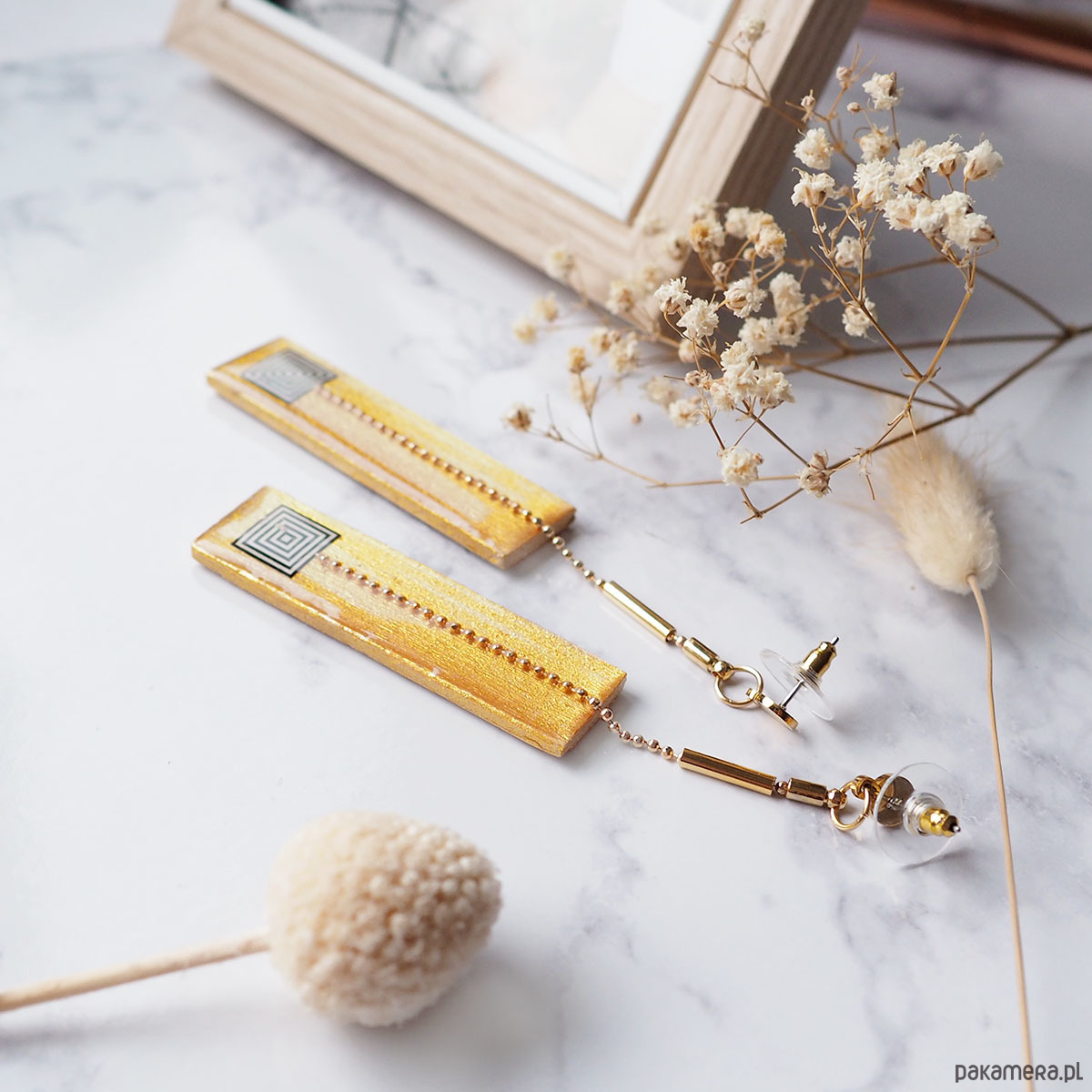 INDUSTRIAL GOLD -ARTYSTYCZNE KOLCZYKI wiszące na sztyfcie