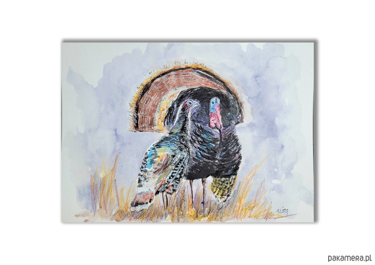Obraz ręcznie malowany, wykonany farbami akwarelowymi znanych producentów; na białym, wysokogatunkowym papierze.