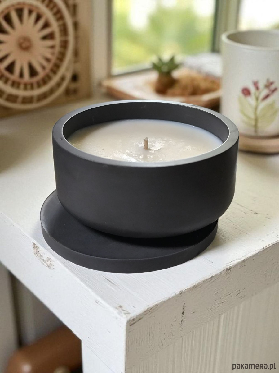 Inspirowana zapachem Herrera-Świeca sojowa w naczyniu gipsowym DEEP BLACK