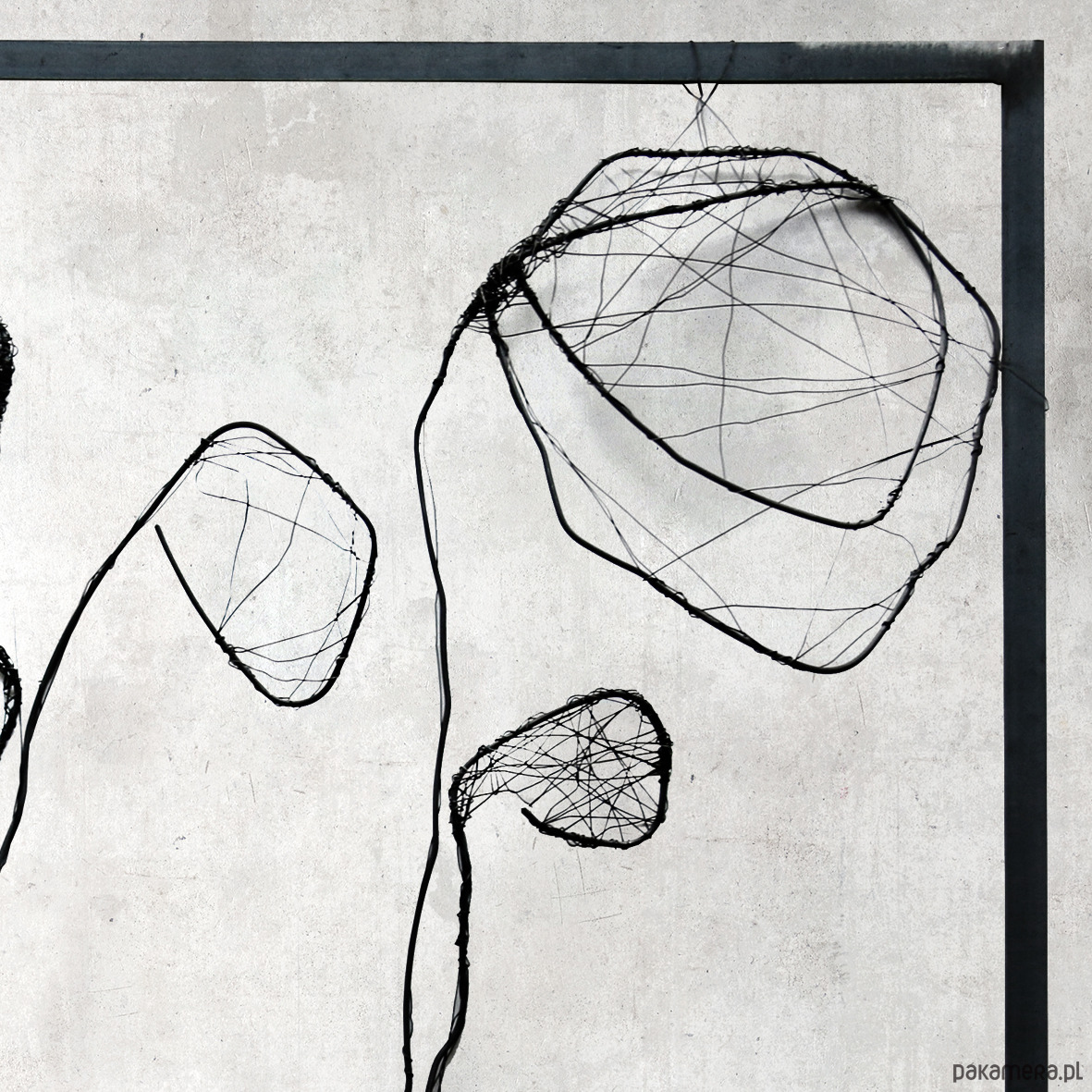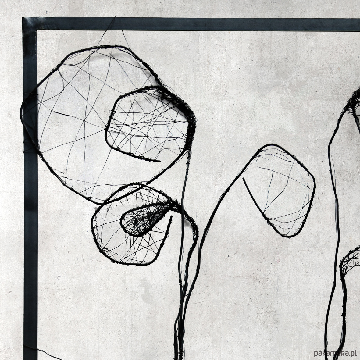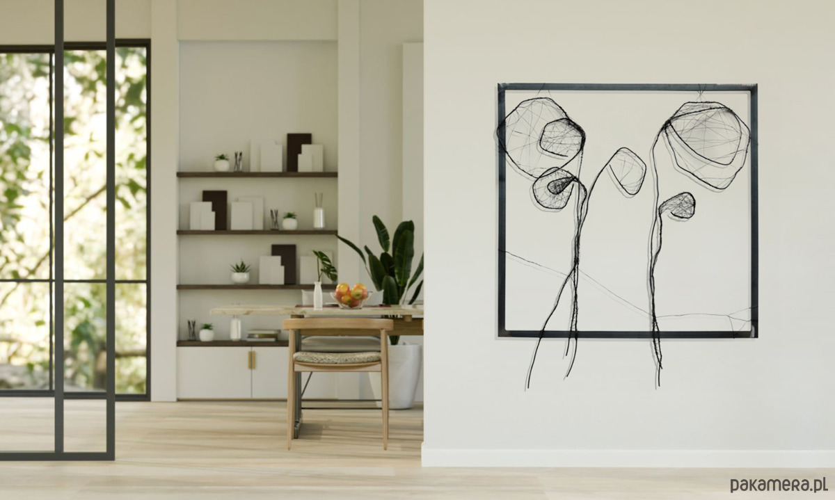 Podlegająca ścisłym rygorom forma przenosi siłę prac w kierunku ekspresji, a nie konkretnych przedstawień. Celowe porzucenie tła powoduje, że centralną częścią prac jest „splątanie” drutu, z których wyłaniają się zarysy kwiatów, przedstawionych w sposób niepełny. Uproszczenie poszerza możliwości interpretacyjne, natomiast redukcja wzmacnia siłę wyrazu. Praca doskonale odnajdzie się jako nowoczesna dekoracja na ścianę w salonie lub sypialni.