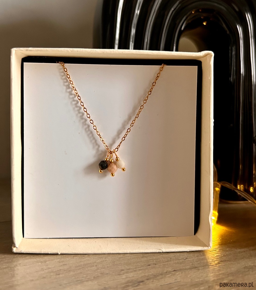 Na łańcuszku (w kolorze złota lub srebra) zawieszone są trzy kamienie naturalne, ale ich liczba może być dowolna — dopasuję je tak, aby niosły symbolikę, której potrzebujesz.