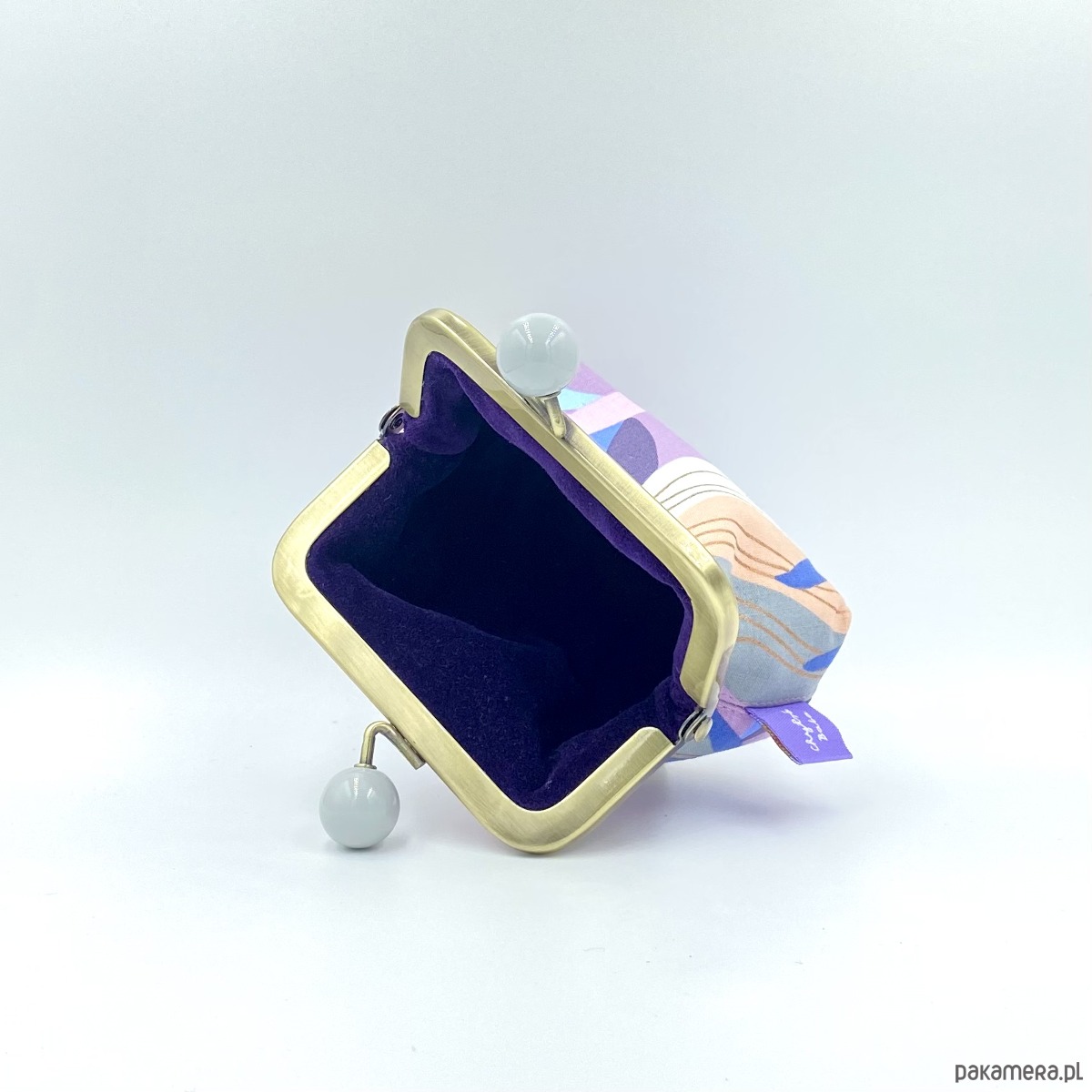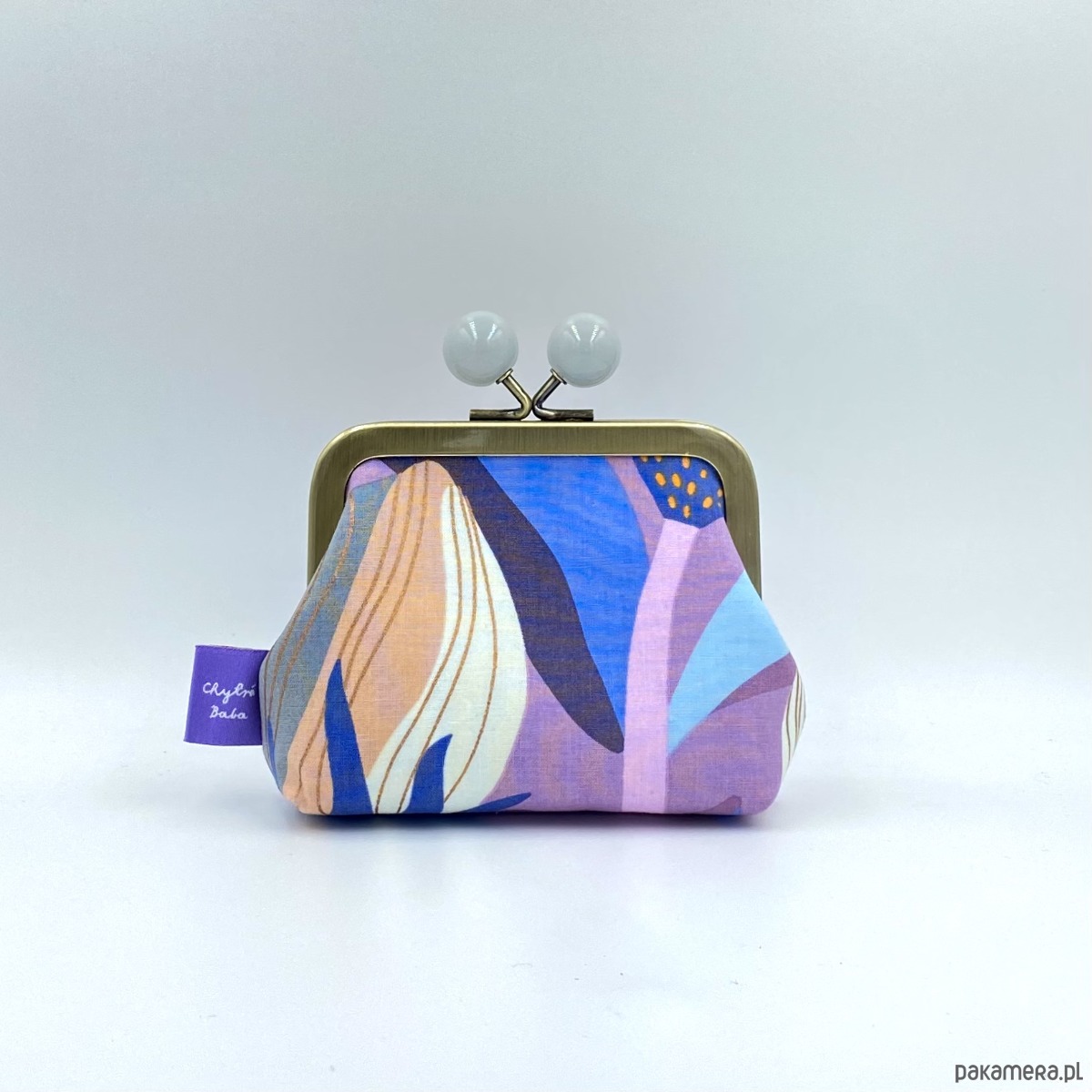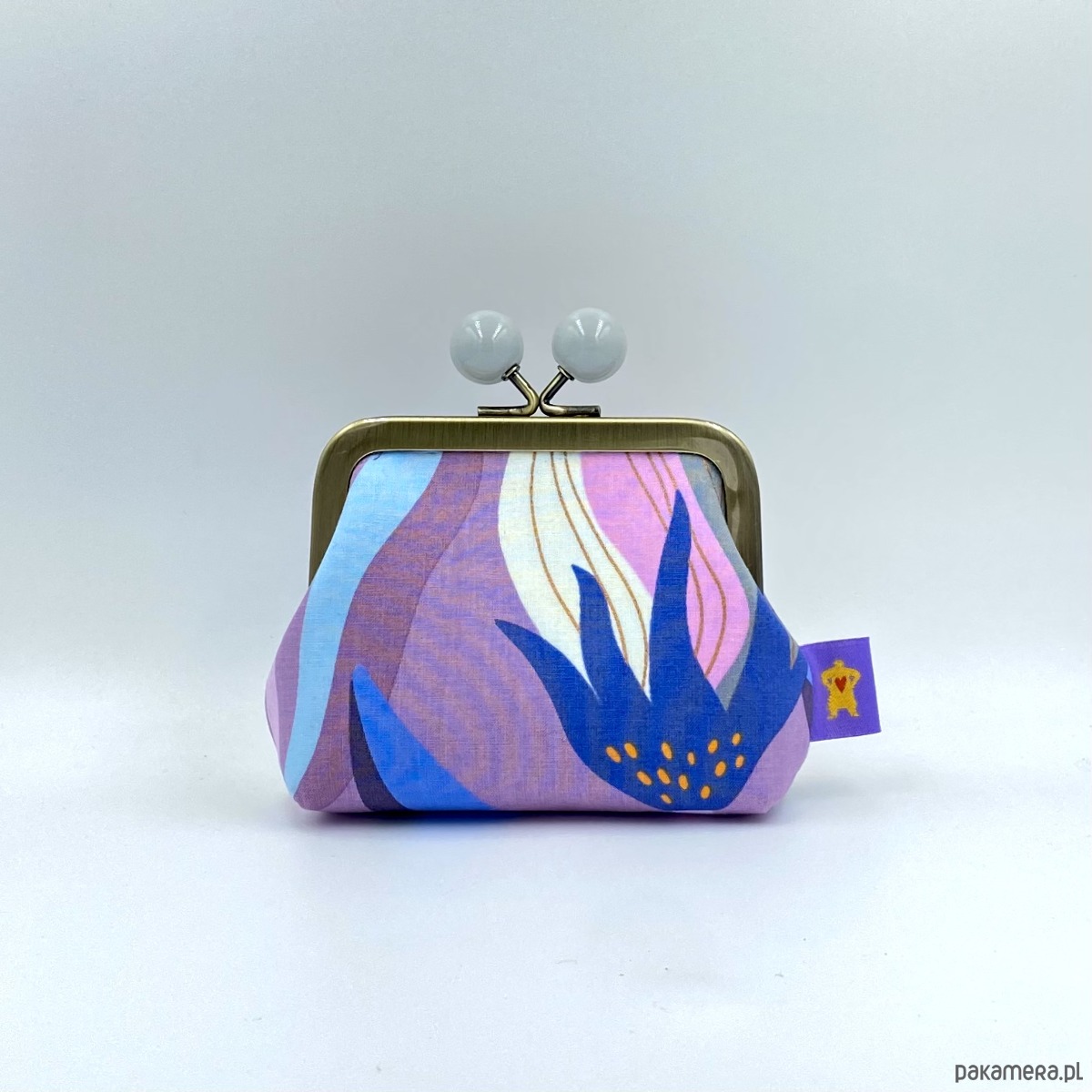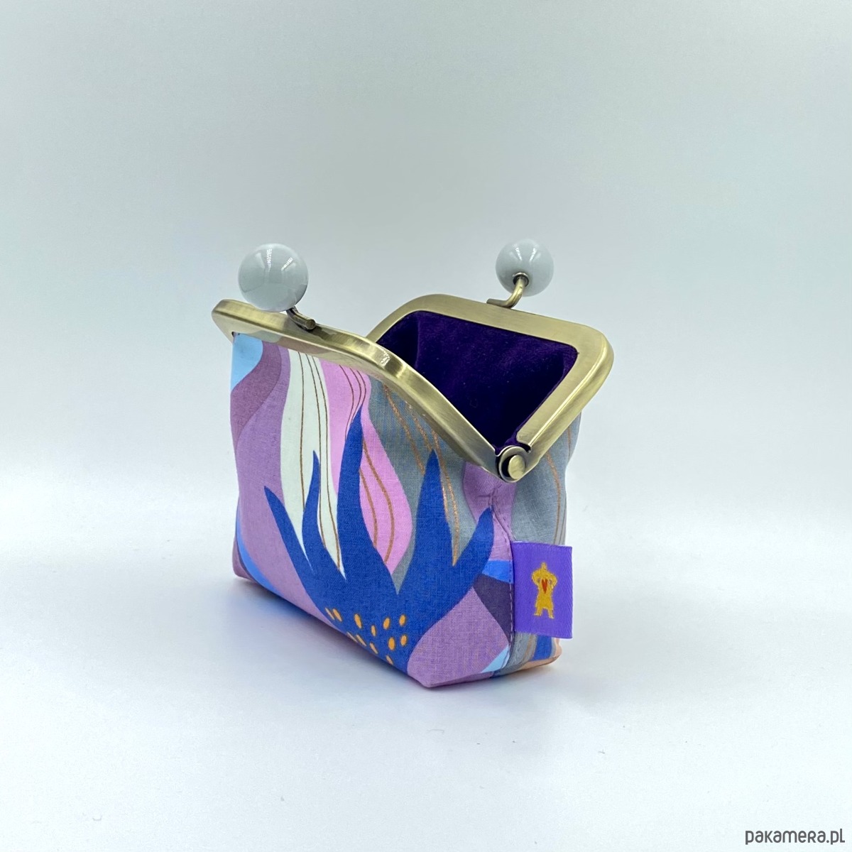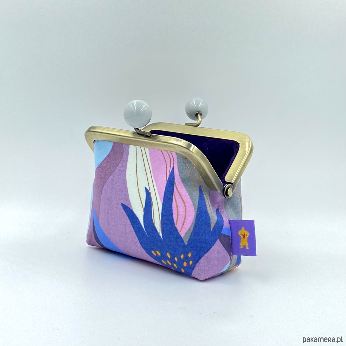 „Iris”to portmonetka z modernistycznym obrazem pąków i liści irysa, w rysunku poprzetykanym nadrukiem złotych żyłek. Wewnątrz intensywny ciemny fiolet aksamitu dobrego gatunku. Jednokomorowa portmonetka, mieści w sobie karty kredytowe.