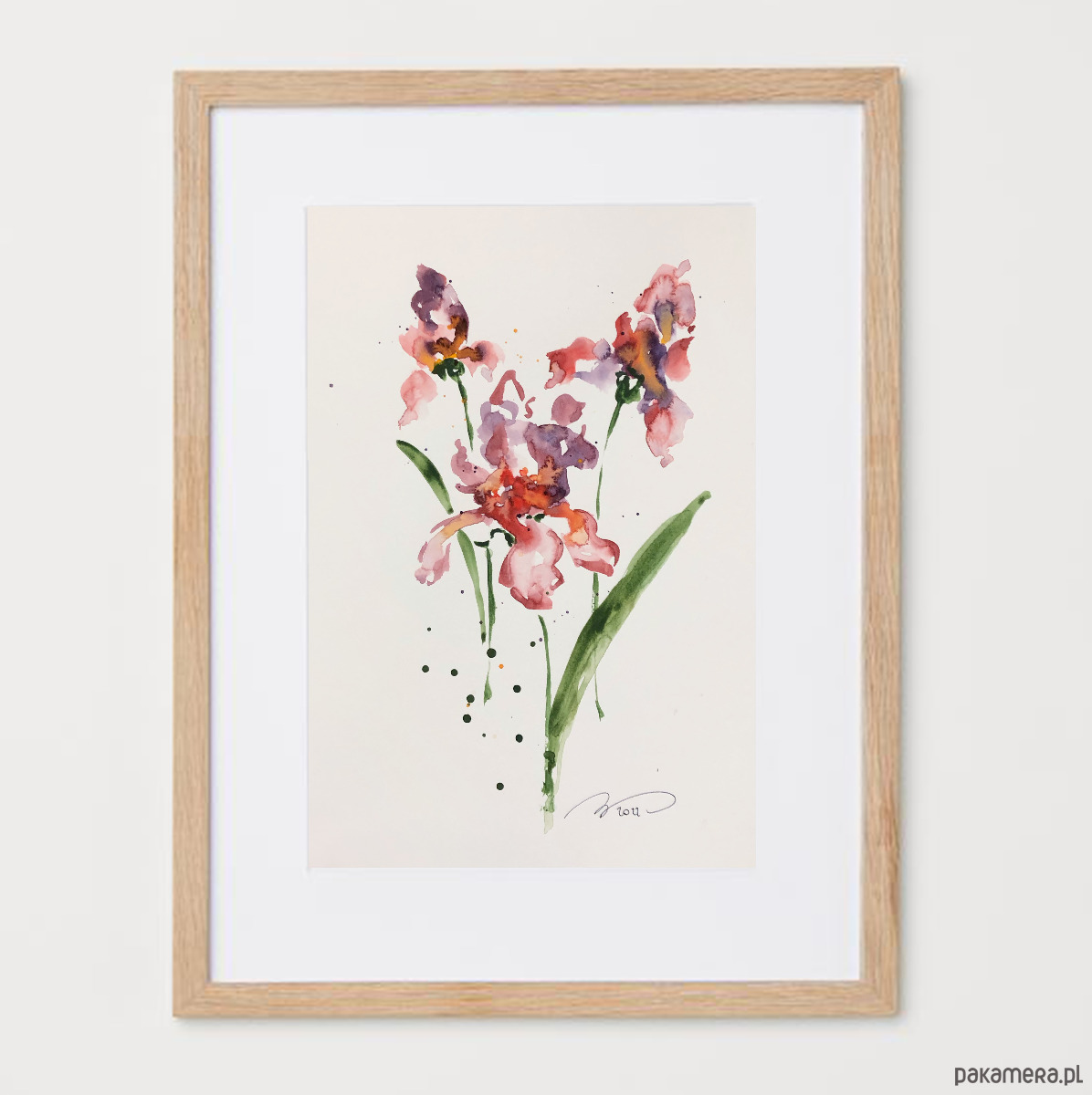 Obraz kwiatowy wykonany techniką akwareli na gładkim białym papierze Clairefontaine