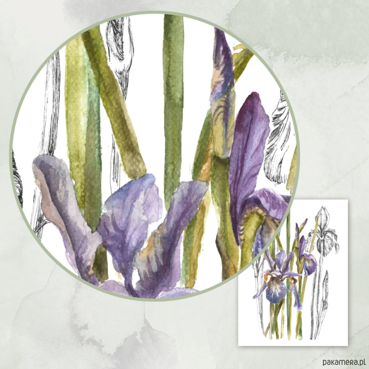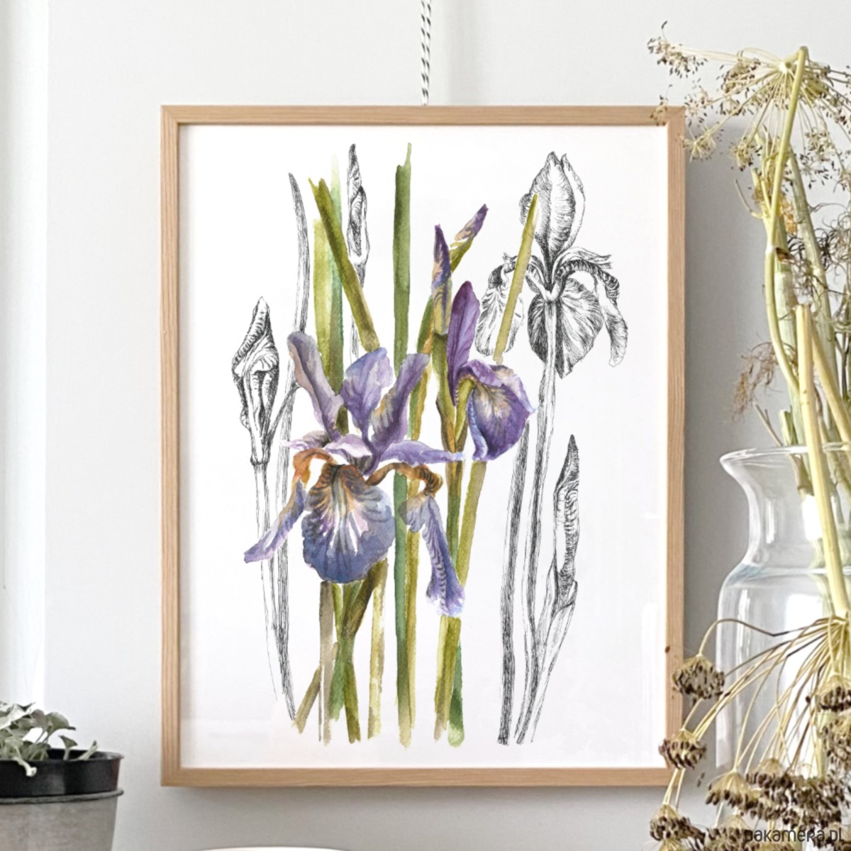 Irysy - akwarela art print w oprawie.