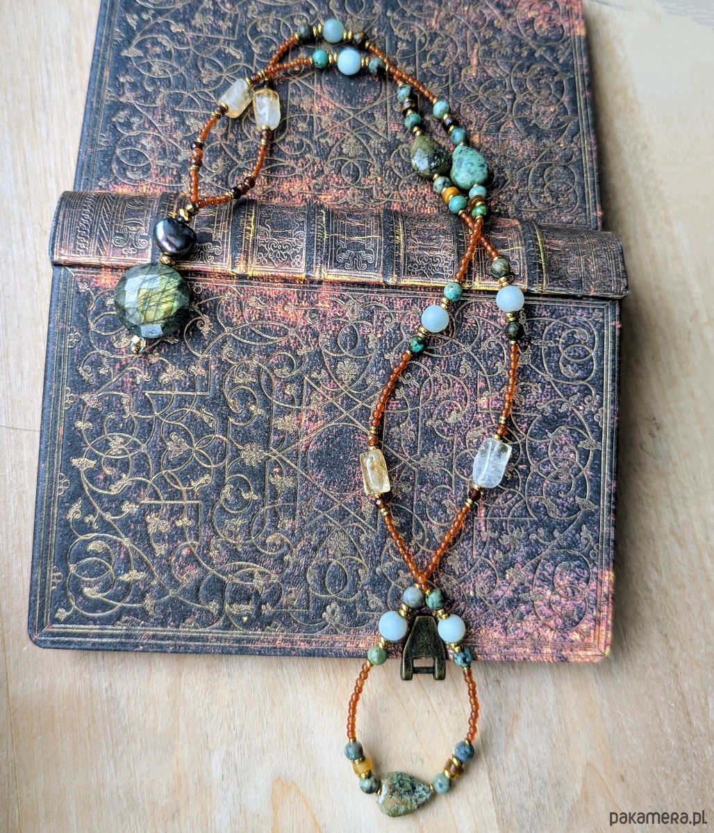 Iskrzący labradoryt. Naszyjnik w stylu etno