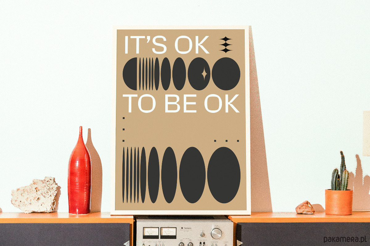 - Motyw: abstrakcyjny, vintage, typograficzny