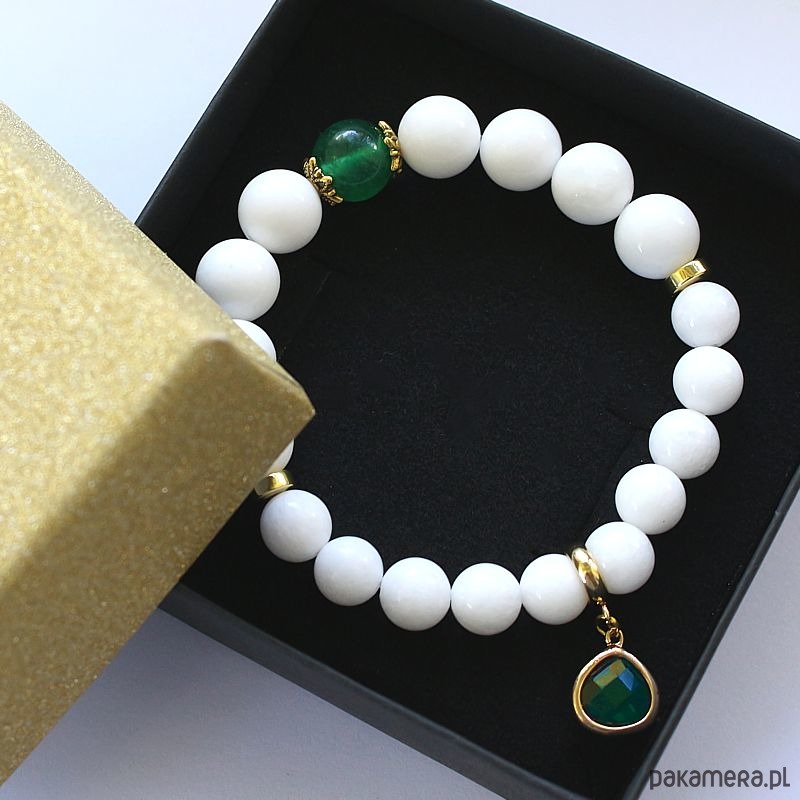 Energetyczna bransoletka z zielonym i białym jadeitem.