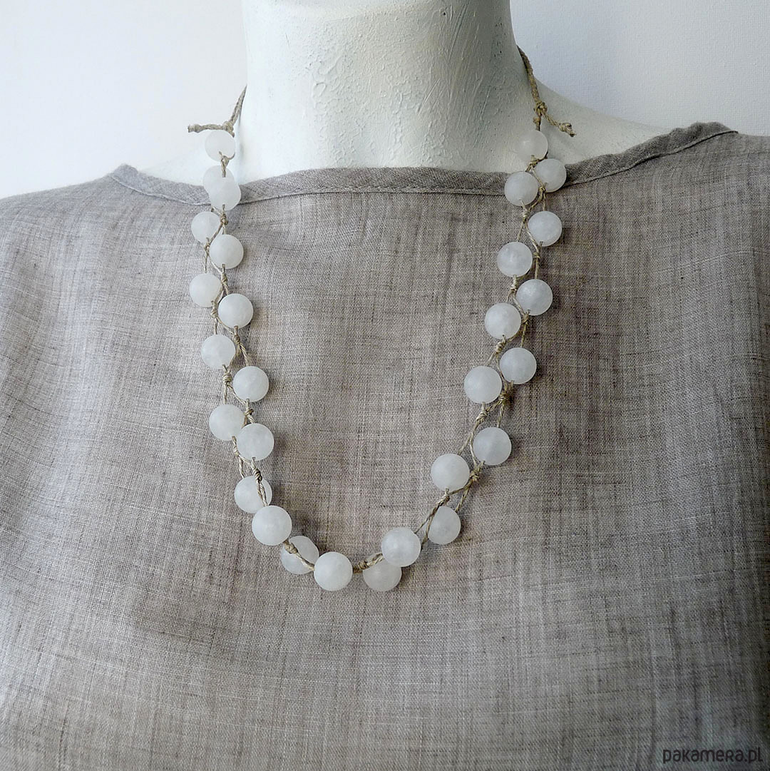 jadeit biały matowy 10 mm (odcień brudnobiały), len naturalny